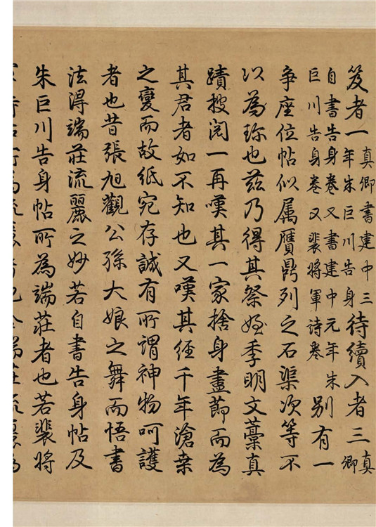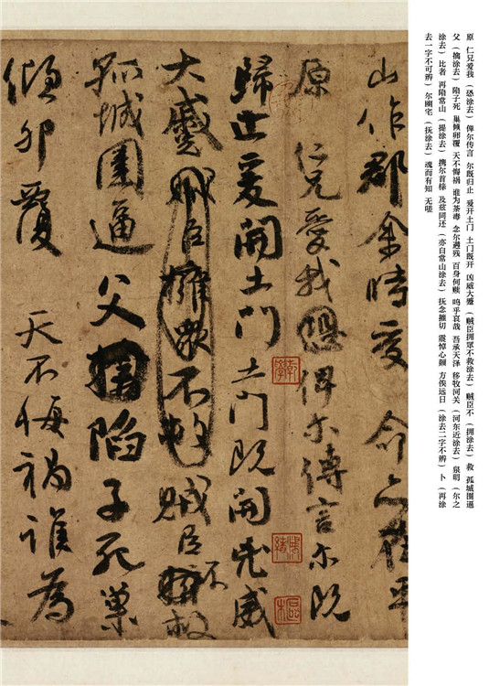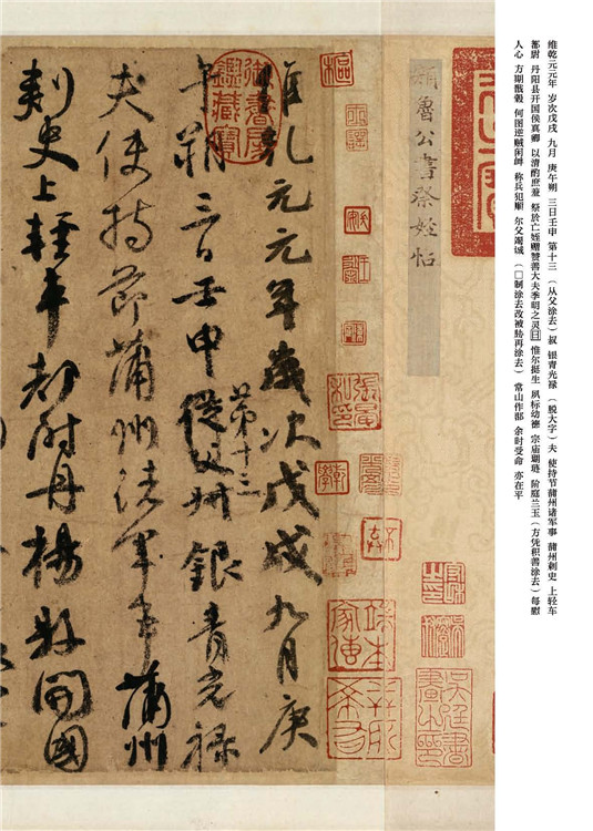 《祭侄文稿》,又稱《祭侄季明文》,顏真卿書(shū),時(shí)年五十,自署書(shū)于乾元元年( 公元758年)九月三日。麻紙本,行草書(shū),文稿一篇,凡25行,計(jì)334字,縱28.16 厘米橫72.32厘米,現(xiàn)藏于臺(tái)北故宮博物院。