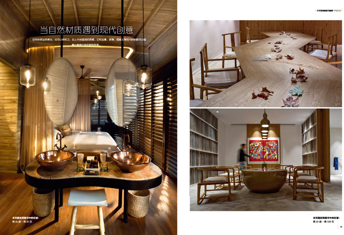 此書是集國內(nèi)外26個(gè)實(shí)際經(jīng)典案例進(jìn)行詳細(xì)解讀,不僅有設(shè)計(jì)師對(duì)案例的設(shè)計(jì)初衷,也有木藝作為軟裝元素的應(yīng)用詳解。從安德魯·馬丁國際室內(nèi)設(shè)計(jì)大獎(jiǎng)獲獎(jiǎng)作品的解讀,作品的高清晰展現(xiàn)到民宿、酒店、住宅、公共空間、餐廳、咖啡館、裝置藝術(shù)等空間分別呈現(xiàn),將原木色的木頭作為藝術(shù)發(fā)揮到理想的高度,這也是“自然原始”美的大集合。