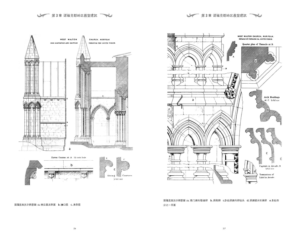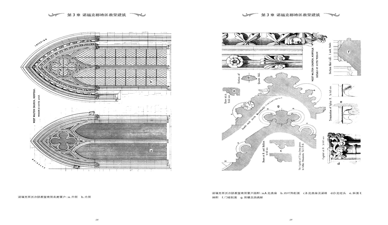 本卷以地區(qū)劃分,共分為約克郡地區(qū)、埃塞克斯郡地區(qū)、諾??丝さ貐^(qū)、貝弗利地區(qū)、薩塞克斯地區(qū)、北安普敦郡地區(qū)、沃里克郡地區(qū)、薩??丝さ貐^(qū)、索美賽特夏郡地區(qū)、林肯郡地區(qū)、肯特郡地區(qū)、威斯敏斯特地區(qū)、溫徹斯特地區(qū)、以利地區(qū)、諾丁漢郡地區(qū)、威爾斯地區(qū)、劍橋郡地區(qū)等18個(gè)章節(jié),對(duì)這些地區(qū)的哥特式教堂建筑圖紙進(jìn)行了注釋解析。