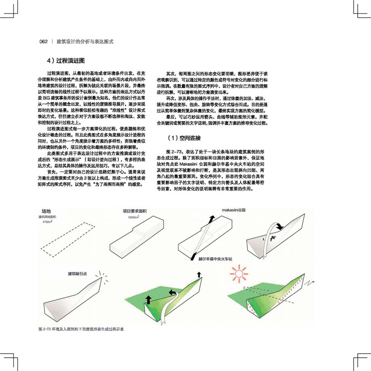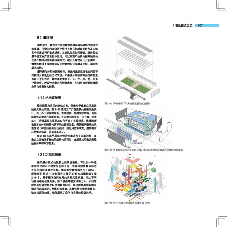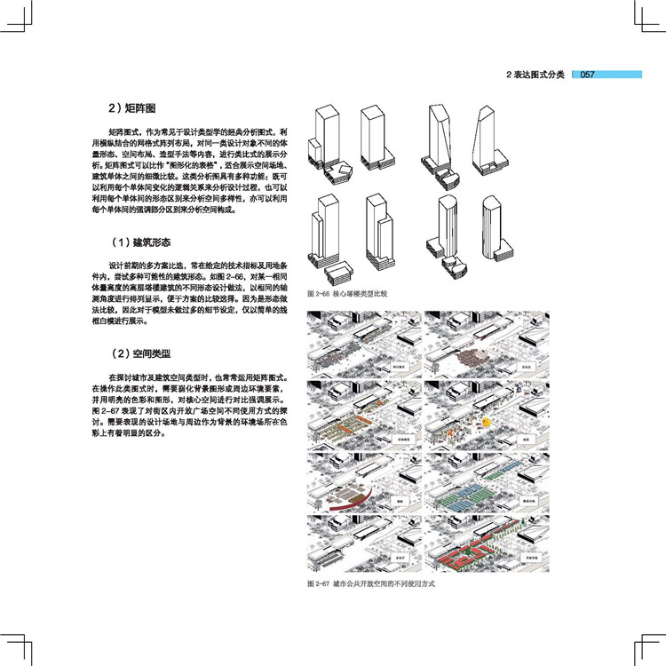 將建筑設(shè)計表達(表現(xiàn))圖式照設(shè)計過程及表達類型(內(nèi)容)的不同分為兩大類別,并對每個類別的不同類型圖式進行了詳細的分析解讀,最后通過具體案例的剖析,讓讀者了解如何將各類風(fēng)格迥異、特色鮮明的圖式整合后,與理性的設(shè)計邏輯結(jié)合,并最終實現(xiàn)方案分析和設(shè)計過程的有機結(jié)合。