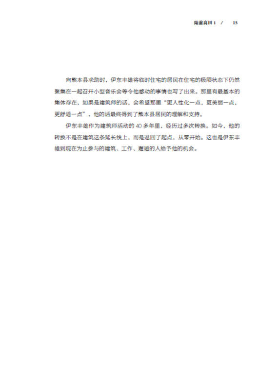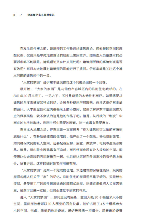 通過本書不僅能了解到建筑大師伊東豐雄的建筑從業(yè)心路歷程,還能了解到作為“永恒建筑的締造者”的伊東豐雄,對(duì)自身的自我要求。