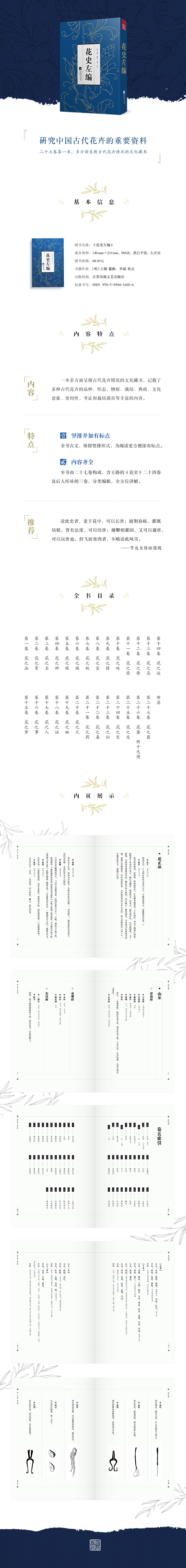 《花史左編》原著沒有標點符號,閱讀十分費時費神,為了讓讀者更好地了解古代花卉情況,本書由李斌教授校點,經過校點和重新排版,比原著更加方便閱讀。