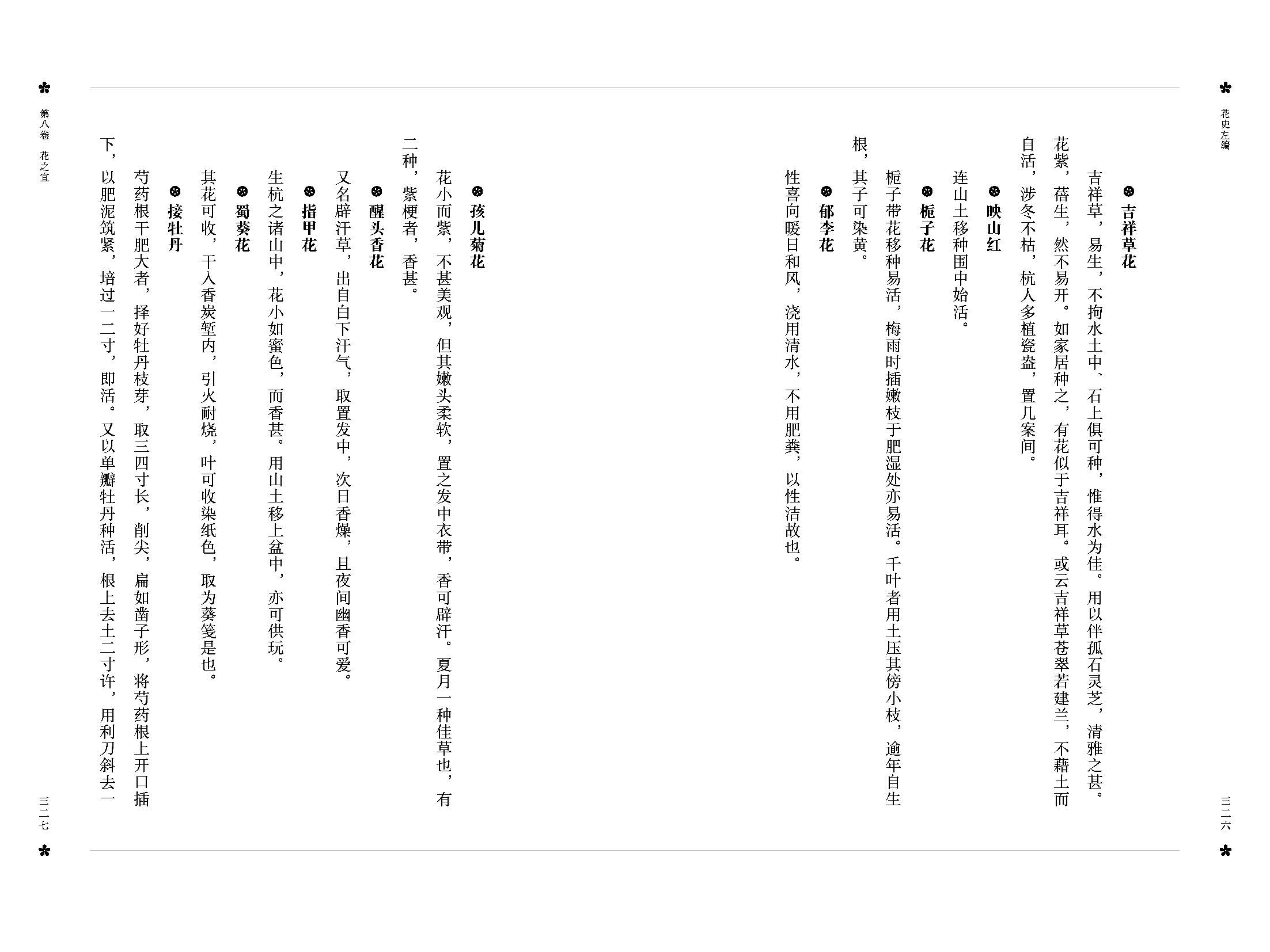 因此,本書內(nèi)容共二十七卷,內(nèi)容豐富,是研究中國(guó)古代花卉的重要資料。