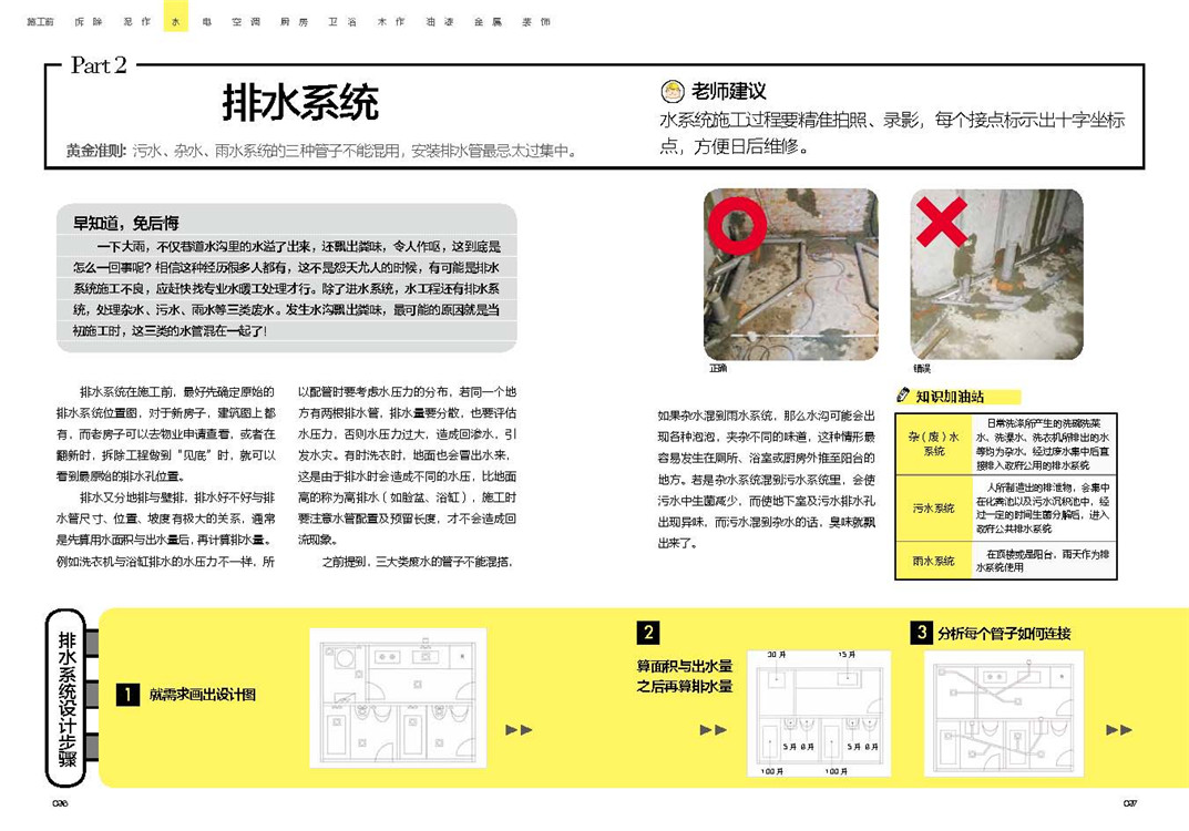 黃金準則:污水、雜水、雨水系統(tǒng)的三種管子不能混用,安裝排水管最忌太過集中。