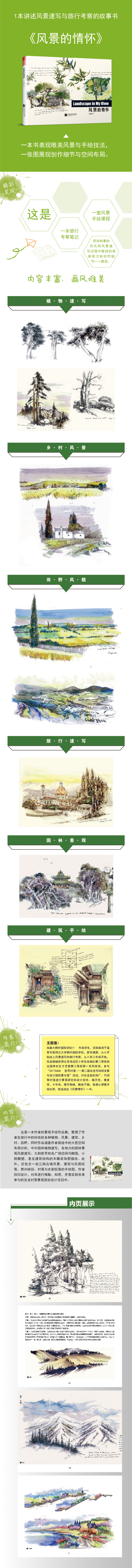 這是一本作者的景觀手繪作品集,整理了作者在旅行中的所繪的各種植物、風(fēng)景、建筑。鄉(xiāng)村。田野。同時(shí)作品涵蓋作者旅途中的大型空間布局分析,中外園林植物速寫,各地方的園林景觀風(fēng)貌速寫。大到世界知名廣場(chǎng)空間鳥瞰圖,小到雕塑,甚至建筑結(jié)構(gòu)的木雕裝飾圖描繪。此外,還包含一些江南古鎮(zhèn)風(fēng)景、建筑與民居院落,貴州梯田、村落與農(nóng)家院落的手繪圖。作者回歸設(shè)計(jì),對(duì)其進(jìn)行推敲、構(gòu)思,并落實(shí)到親身參與的安龍村落景觀規(guī)劃設(shè)計(jì)項(xiàng)目中。