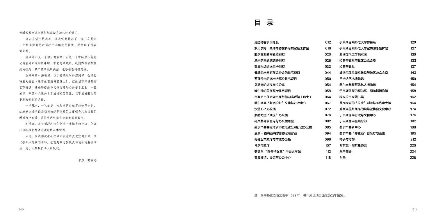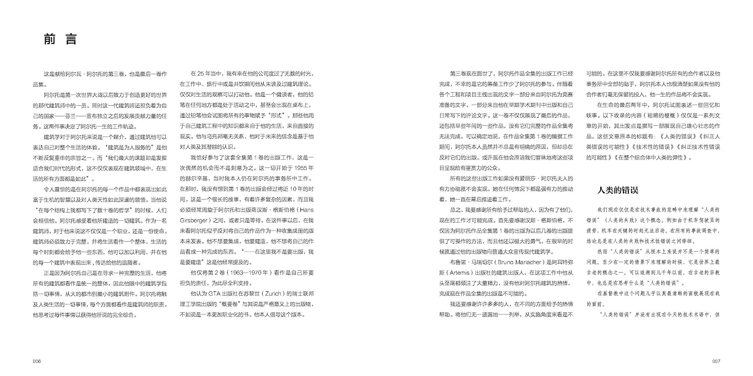 本卷外文原版出版于1978年,是這位大師作品集的第3卷,也是全集中的最后一卷,不僅展現(xiàn)了阿爾瓦·阿爾托最后的作品,還包括了早些年的作品,沒有它們就算不上完整的全集。本書中包括了一部分阿爾托為競賽準備的文字,還有部分早期技術(shù)期刊和個人評論的文字??枴じダ赘窈蛺埯惿ぐ柾蟹蛉酥谱鞯倪@一版作品全集不僅僅展現(xiàn)了阿爾托最后的作品,另外還展現(xiàn)了阿爾托全部的成就和阿爾托本人。