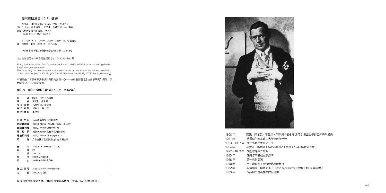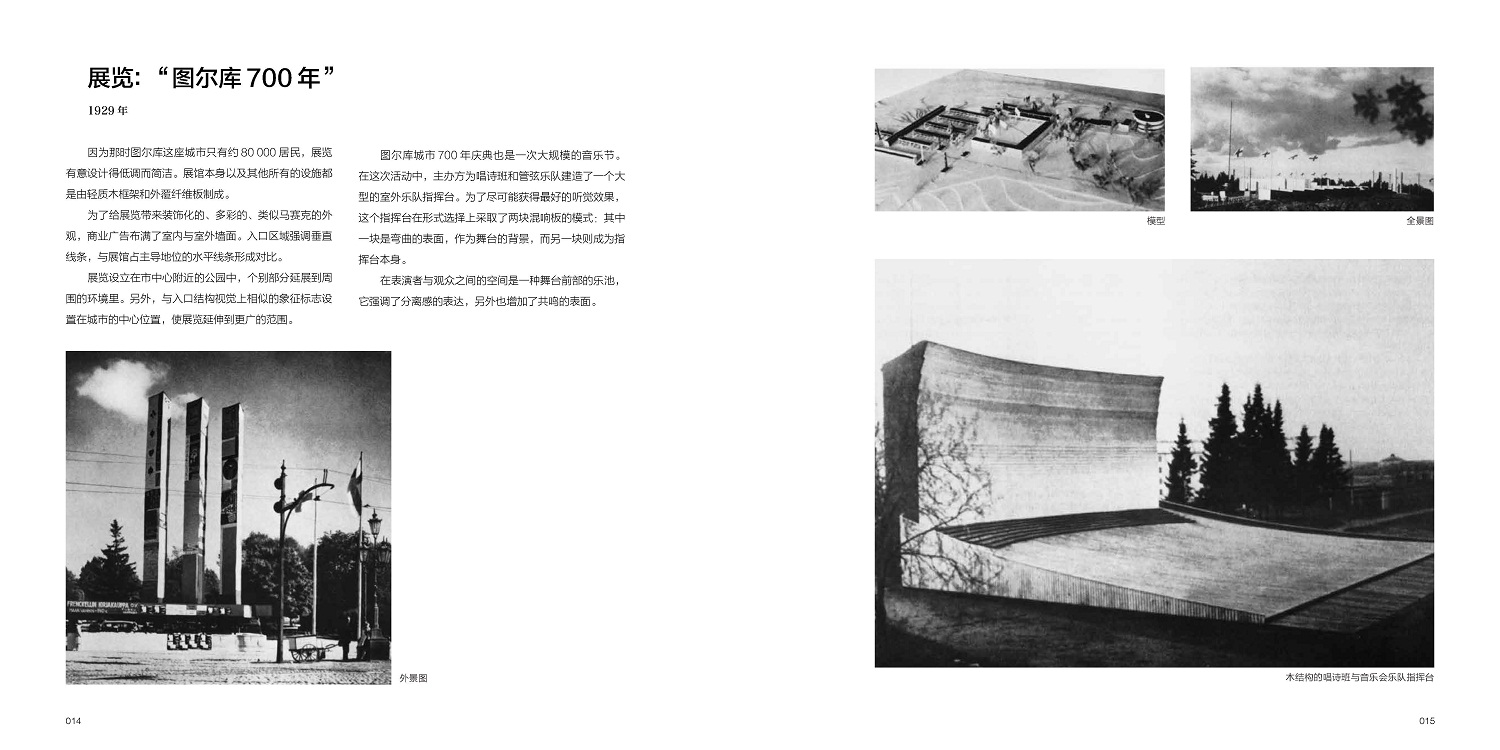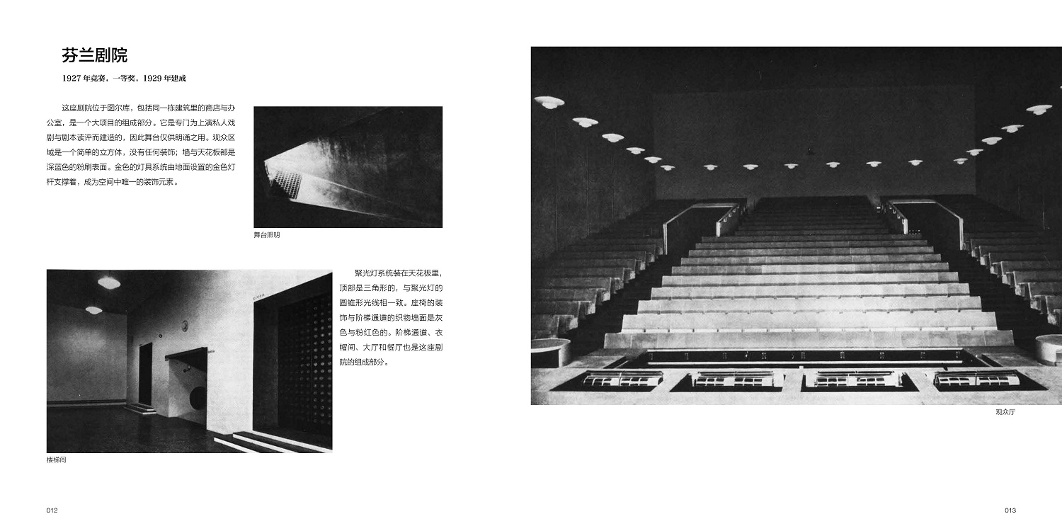 本卷外文原版出版于1963年,是這位大師作品集的第1卷,收錄從1922—1962年的建筑設(shè)計與規(guī)劃案例,從1929年建成位于圖爾庫的芬蘭劇院,到1962年的新赫爾辛基城市中心方案,通過280余張照片,近200張設(shè)計圖紙和草圖,按時間順序為讀者展示。本書并沒有將阿爾托的建筑設(shè)計歸類于某種風格或流派,也沒有對他的作品小題大做,只是將他的建筑設(shè)計忠實、客觀、簡要地展示與陳述給讀者。
