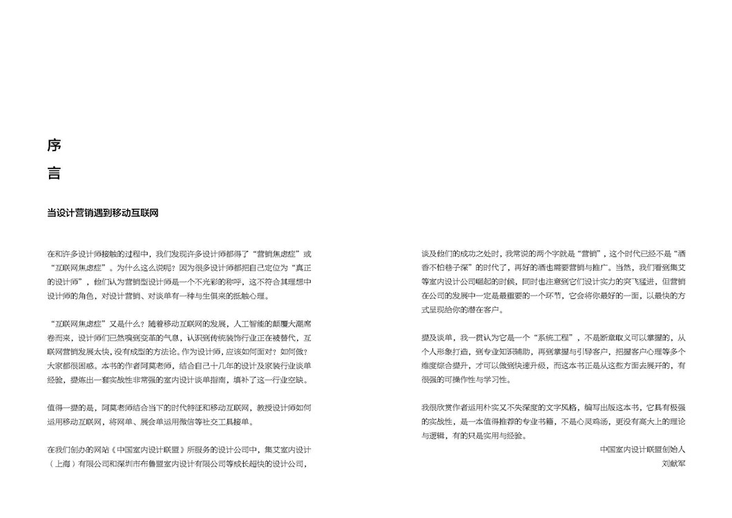 許多剛?cè)胄械氖覂?nèi)設(shè)計(jì)師,非常頭疼簽單的問(wèn)題,一個(gè)月簽不了幾個(gè)單,甚至都不能開張,每月的基本工資難以維持生計(jì),甚至有轉(zhuǎn)行的想法。這本《簽單:室內(nèi)設(shè)計(jì)師營(yíng)銷必修課》的出版,能有效解決剛?cè)胄惺覂?nèi)設(shè)計(jì)師的更多困惑,作者阿莫老師有著十幾年室內(nèi)設(shè)計(jì)簽單經(jīng)驗(yàn),書中所述內(nèi)容實(shí)踐性很強(qiáng),描述簡(jiǎn)單易懂,一學(xué)就會(huì)。這本書是作者在室內(nèi)設(shè)計(jì)聯(lián)盟網(wǎng)站 “從簽單難到簽單王的蛻變”公開課的精華版,深度濃縮了作者簽單技巧的精華。