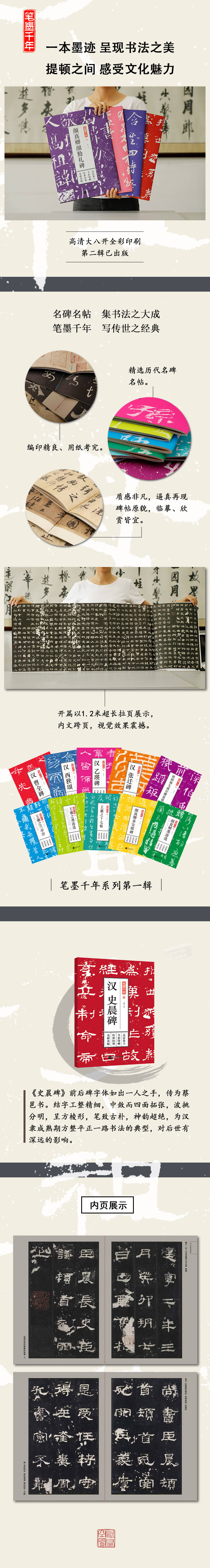 2、本系列精選歷代名碑名帖40余種,大八開全彩印刷、高清放大、編印精良,逼真再現(xiàn)碑帖原貌。