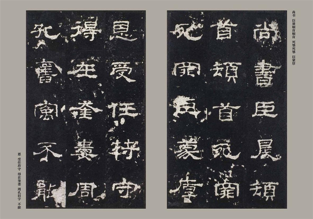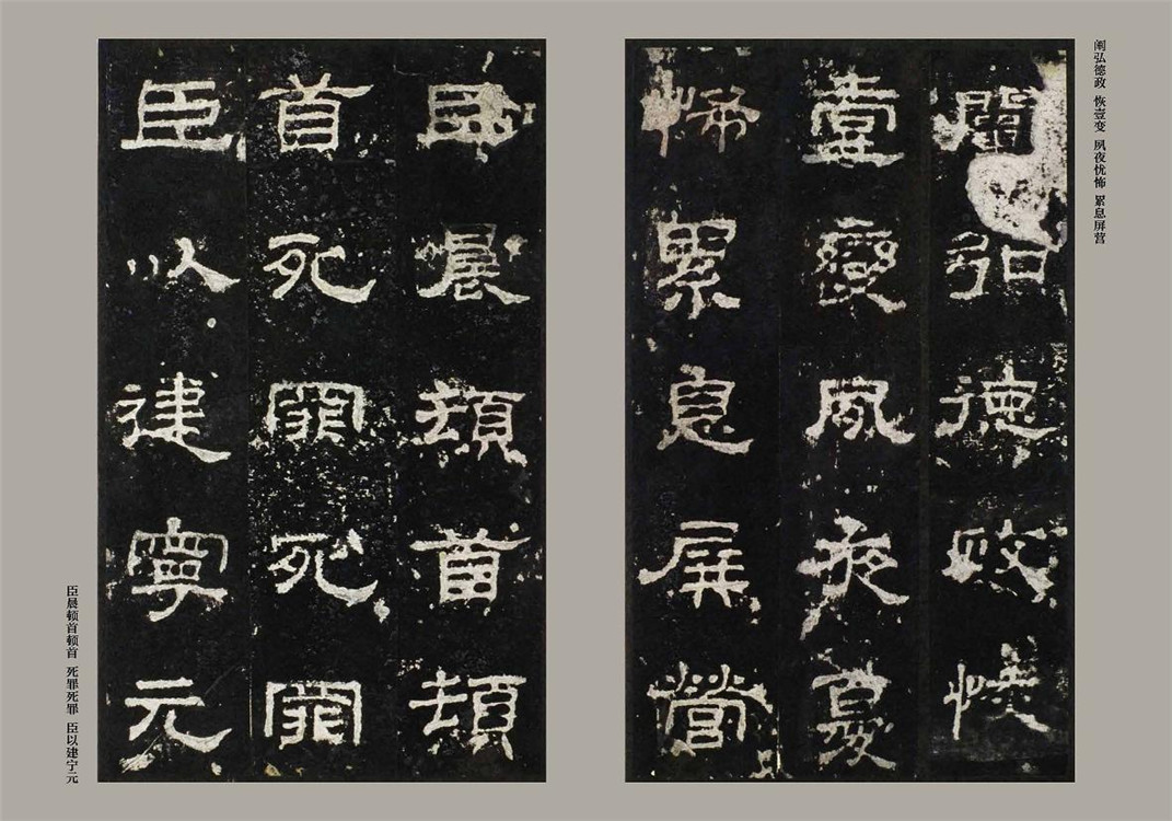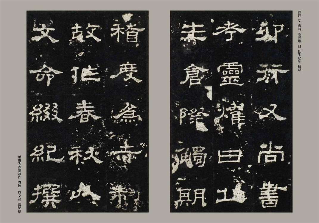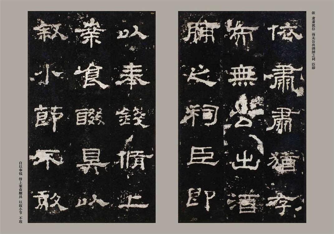 前后碑字體如出一人之手,傳為蔡邕書(shū)。結(jié)字工整精細(xì),中斂而四面拓張,波挑分明,呈