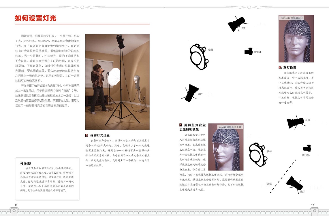 ●介紹了奇幻藝術(shù)繪畫的基礎(chǔ)知識,如使用參考照片、攝影設(shè)備及繪畫用具、設(shè)置燈光、與模特合作等內(nèi)容。