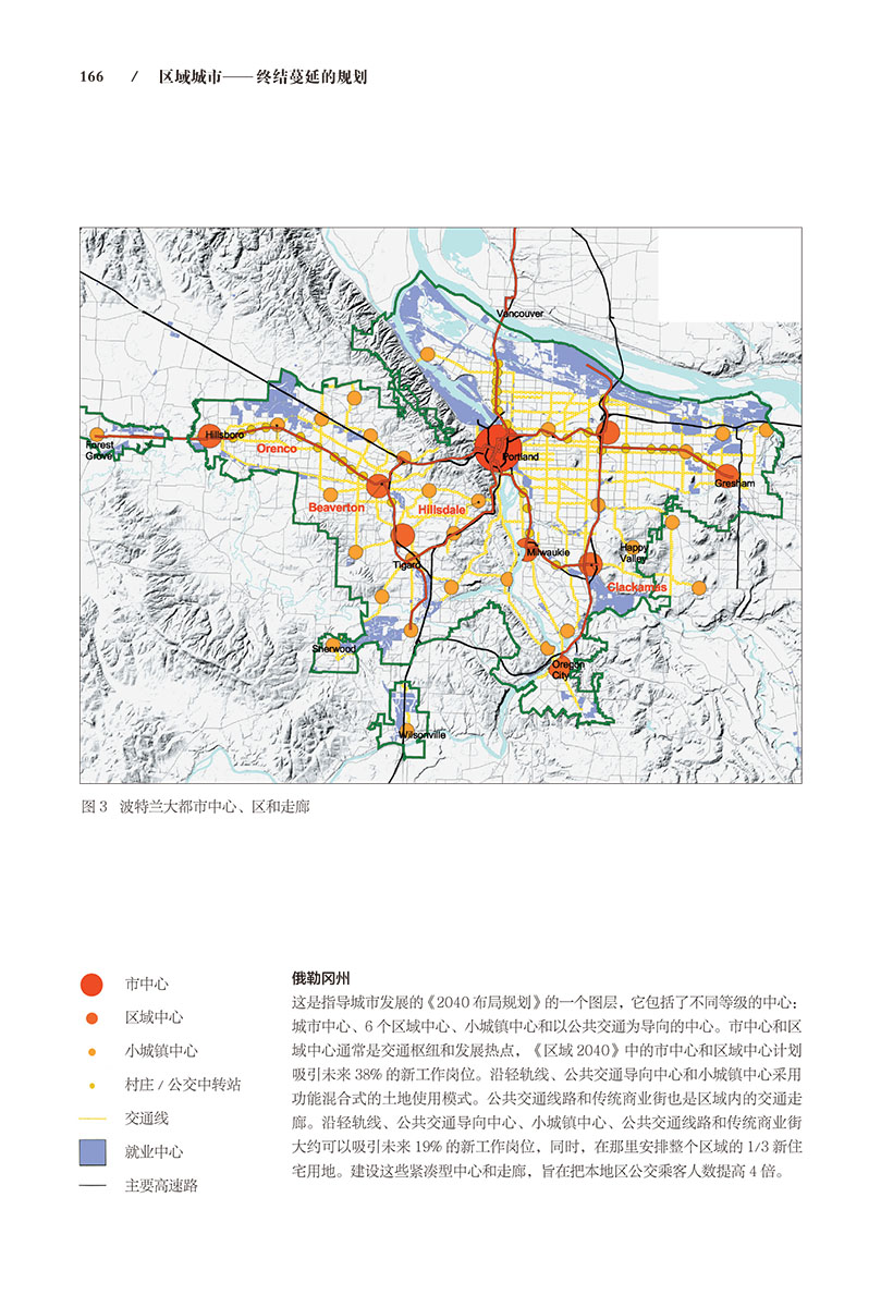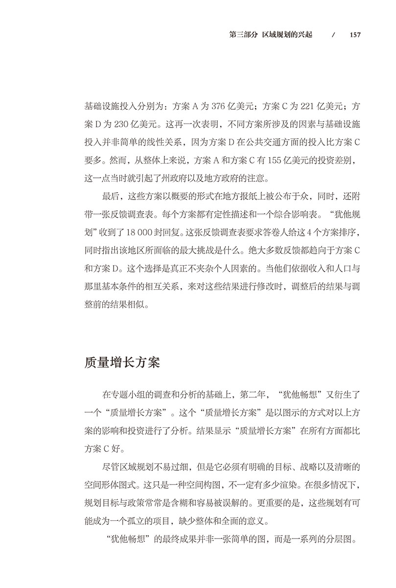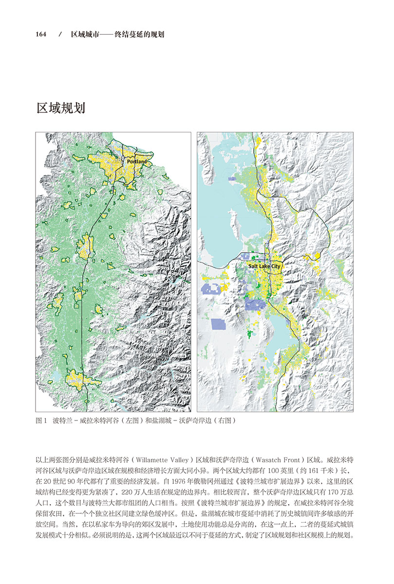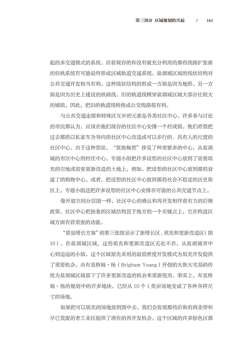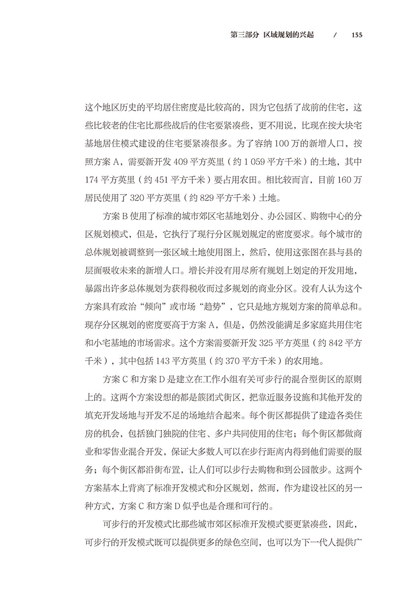 第三部分“區(qū)域規(guī)劃的興起”,記述了整個美國究竟有多少大都市正在通過形體設計、社會和經(jīng)濟政策向區(qū)域城市轉(zhuǎn)變。我們集中研究了三個走在最前列的區(qū)域城市:波特蘭、西雅圖和鹽湖城。我們也考慮到了在特大都市區(qū)域執(zhí)行區(qū)域尺度上的政策的困難,特別注意到美國州政府所扮演的潛在的角色,如佛羅里達、馬里蘭和明尼蘇達。