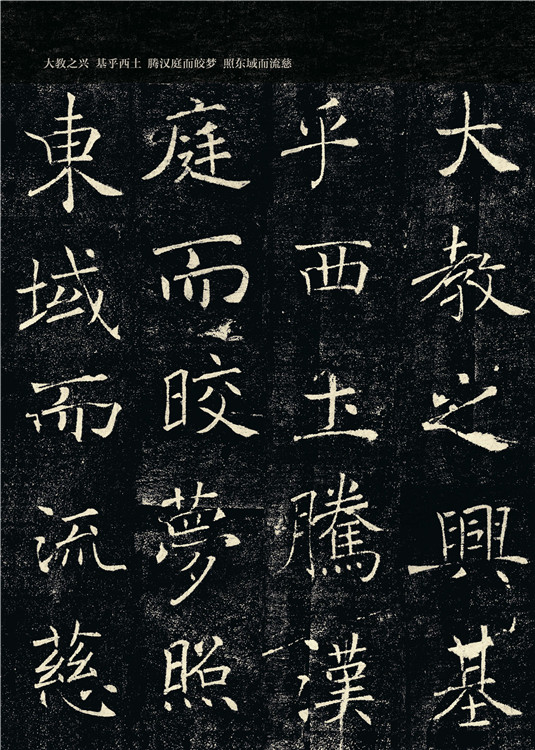 “S” 形運筆是《雁塔圣教序》的一個典型特征。而其小豎,尤其是左豎,波浪形尤為明顯,達到了弧線擺動之極致,整體表現(xiàn)出一種柔韌之美。但是,不可徒書其形。這種S形勢只在部分字中出現(xiàn),因其獨特,故印象深刻。臨習時,應結合其他筆畫的自然銜接為根本。全篇每字落筆處往往不是虛入,而是重按而行,形成一種大膽落筆、大膽收拾之勢。為用筆輕重先行準備了一個變化起點,由重至輕,從而使用筆非常豐富,且有成竹在胸之意。