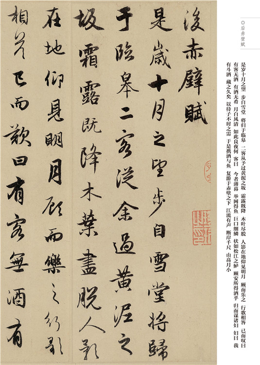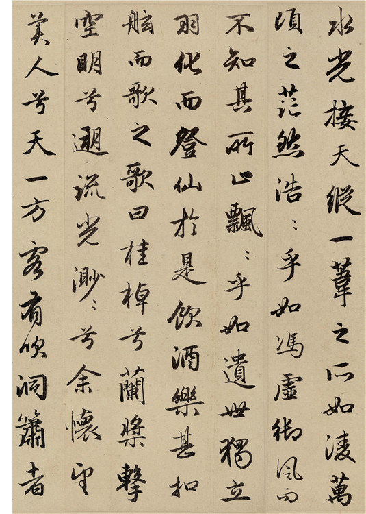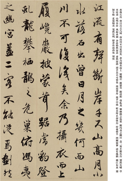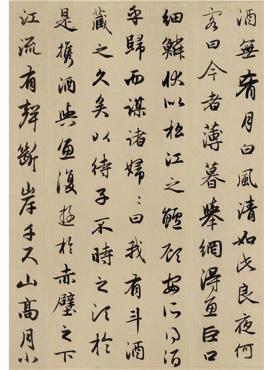 趙孟頫(1254—1322年),字子昂,號(hào)松雪,又號(hào)水晶宮道人,浙江吳興人,為宋皇室趙德芳的后代。趙孟頫于至元二十三年應(yīng)選入朝,一生為官。趙孟頫書(shū)風(fēng)能籠罩于元、明、清諸代,首先應(yīng)歸功其深厚的藝術(shù)造詣和對(duì)傳統(tǒng)的精確闡釋。我們可以非議其骨氣,但應(yīng)一分為二地看待其書(shū)法。作為開(kāi)宗立派的人物,趙孟頫早年學(xué)宋高宗,中年專(zhuān)習(xí)“二王”,虞集謂之“楷法探《洛神賦》而攬其標(biāo),行書(shū)諧《圣教序》而入其室,至于草書(shū)飽《十七帖》而變其形”。晚年又著力李北海,因此深厚的傳統(tǒng)積淀成就了趙體的輝煌。