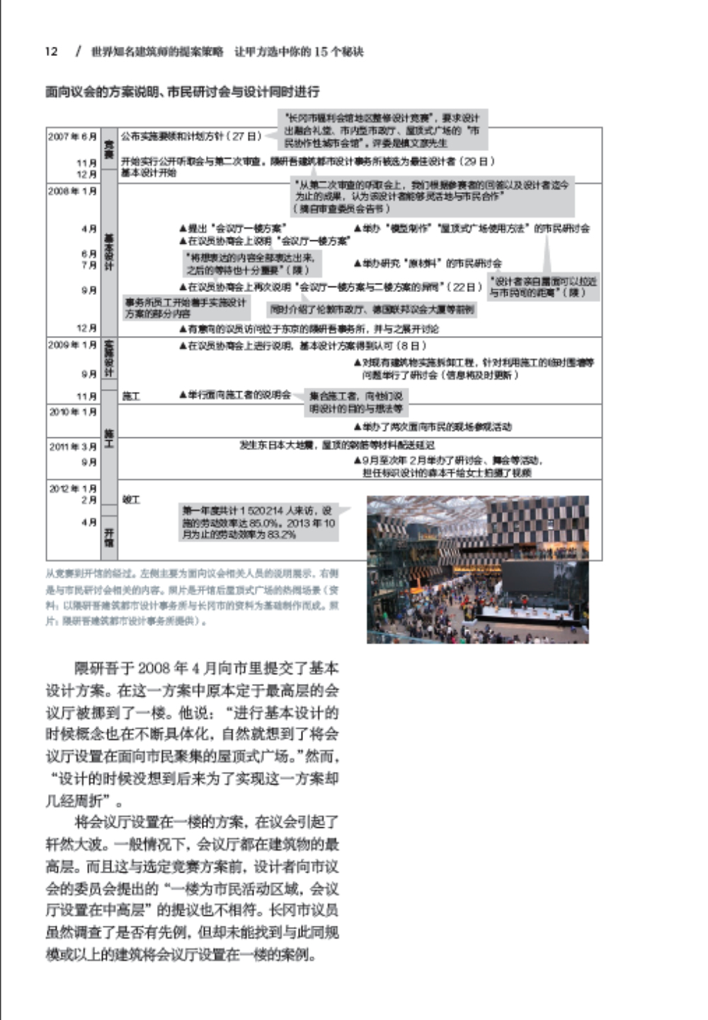 日經(jīng)建筑以“建筑物的設(shè)計者在實(shí)現(xiàn)大膽創(chuàng)意、解決復(fù)雜難題的過程中,是如何“說服”客戶及相關(guān)人士的呢?”的問題為出發(fā)點(diǎn)開始了連載企劃“打動人心的說明展示”,而本書則是對該企劃重新編撰后的集大成之作。