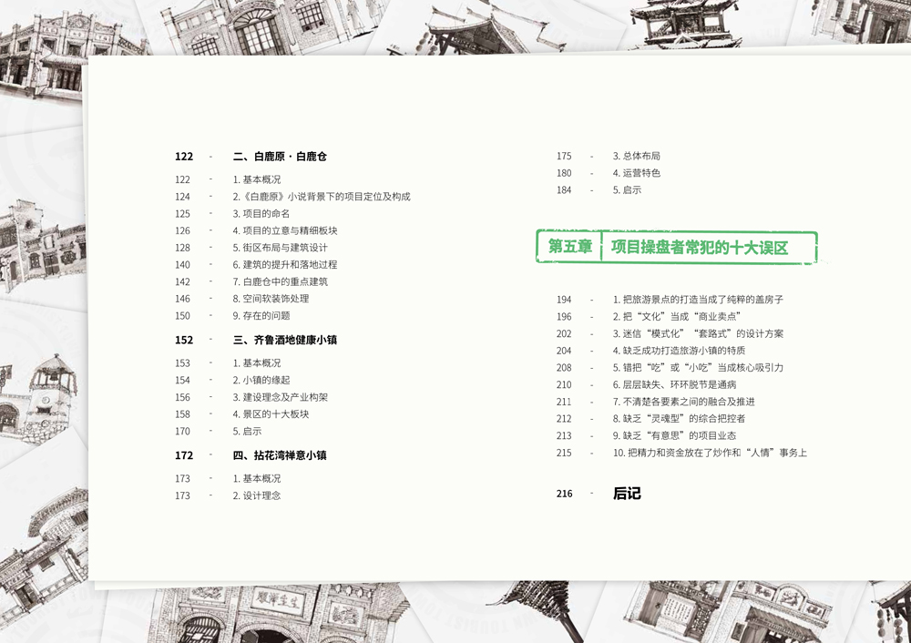 書中共包括旅游小鎮(zhèn)的發(fā)展現狀、旅游小鎮(zhèn)的總體構成、如何從無到有打造旅游小鎮(zhèn)、經典案例分析、項目操盤者常犯的的誤區(qū)五個章節(jié),圖文并茂,實用性強。