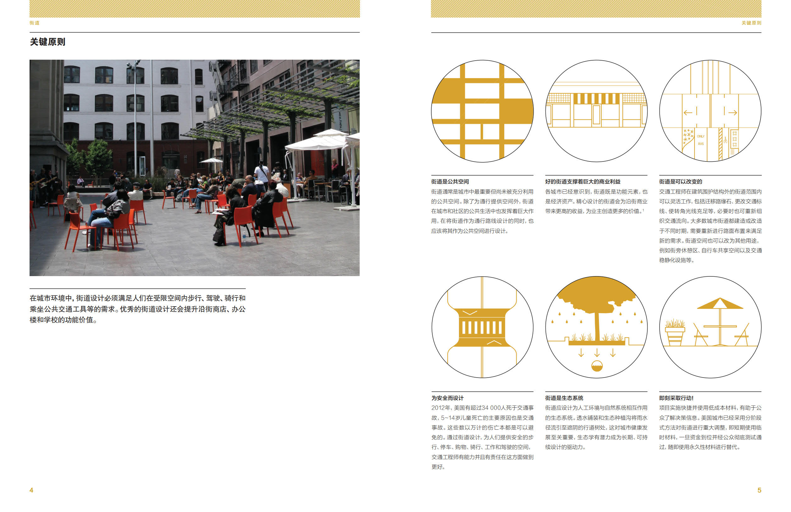 《城市街道設(shè)計(jì)指南》概述了城市街道設(shè)計(jì)的各種原則,使街道安全而富有魅力,吸引人們?cè)诔鞘协h(huán)境中步行、購物、停留以及駕駛,這些原則旨在創(chuàng)造真正為人所用的城市街道空間。