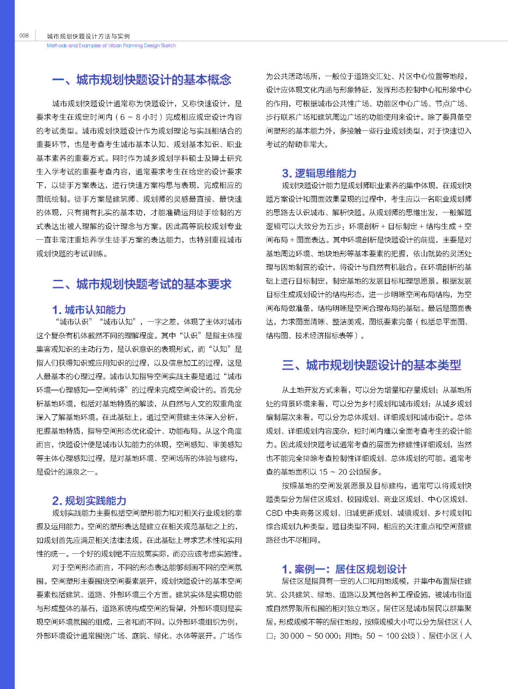 本書是對城市規(guī)劃快題設(shè)計進(jìn)行全面解析的綜合教程,以城市規(guī)劃快題設(shè)計方法為基礎(chǔ),以解決城市規(guī)劃快題設(shè)計難點為目標(biāo),以提升規(guī)劃設(shè)計水平為宗旨。全書分為五章。第一章為城市規(guī)劃快題設(shè)計的基本概述,第二章為城市規(guī)劃快題設(shè)計的應(yīng)試方法,第三章為城市規(guī)劃快題設(shè)計的方法進(jìn)階,第四章為各大院??佳姓骖}作品解析,第五章為快題基礎(chǔ)及表達(dá)突擊。通過本書的學(xué)習(xí),希望能夠拓寬讀者的設(shè)計思路,全面提升城市規(guī)劃快題設(shè)計方案表達(dá)和圖面表現(xiàn)能力。