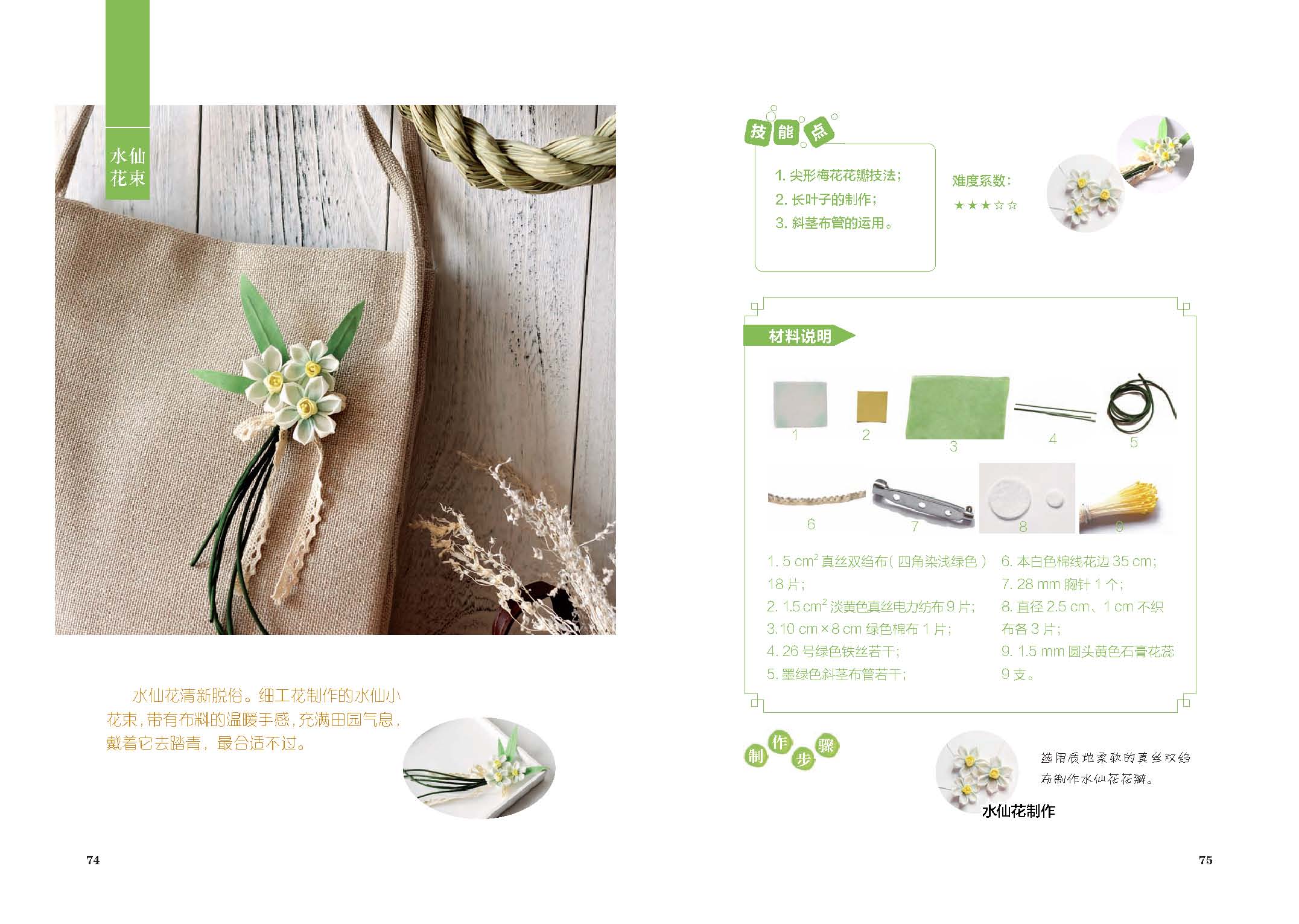 本書全面系統(tǒng)地講解了細(xì)工花飾品的制作方法。細(xì)工花是起源于日本江戶時(shí)代的一種手工藝,它主要通過布片的折疊制作形態(tài)各異的花瓣,再將花兒組合成各種飾品。本書從細(xì)工花的基本制作方法講起,通過引入12個(gè)月、12種顏色、24種世界名花作為經(jīng)典案例作品,呈現(xiàn)出或清新或優(yōu)雅或華麗的風(fēng)格,展現(xiàn)出細(xì)工花的多種用途,并配有詳細(xì)、清晰的花形制作教程,讓讀者可以輕松地跟著步驟做出專屬自己風(fēng)格的手作花飾品。與日本傳統(tǒng)細(xì)工造花相比更具有中國古典美意蘊(yùn)。