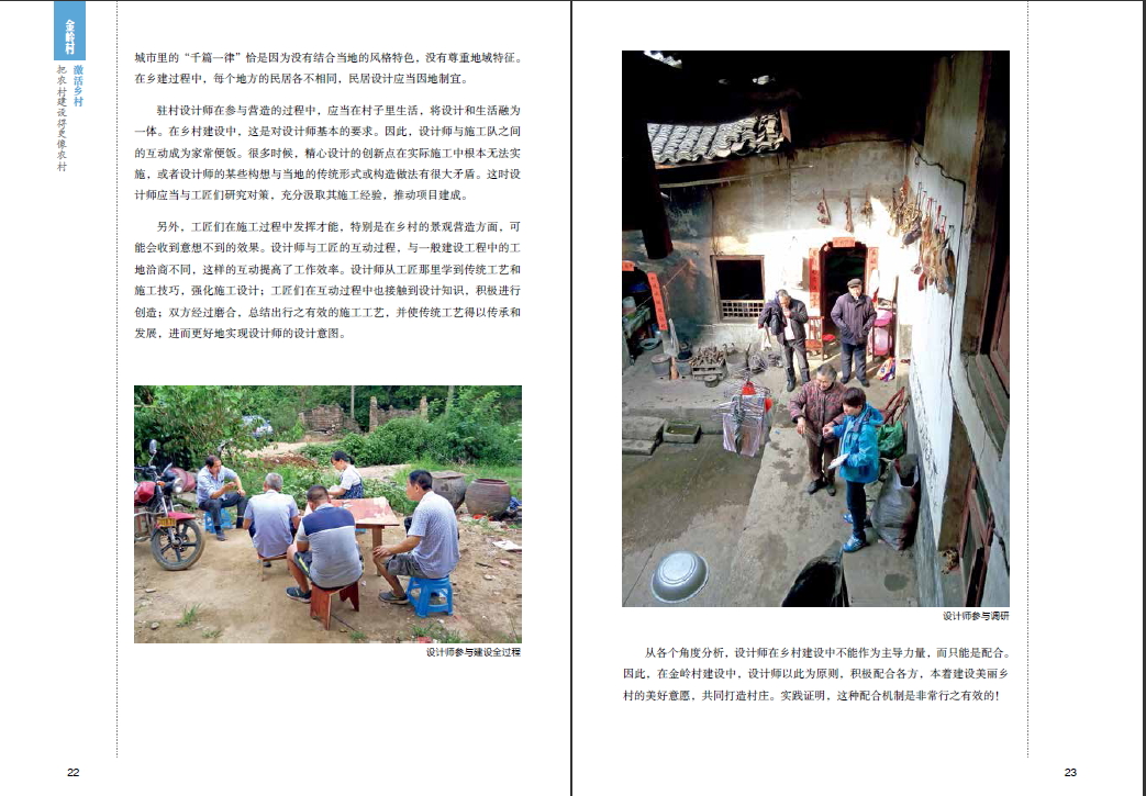 金嶺村是此套實踐篇中傳統(tǒng)村落保護的典型示范村,不論是主創(chuàng)設(shè)計師、駐場設(shè)計師,還是項目負責(zé)人都充滿了文化情懷,設(shè)計訪談和設(shè)計小節(jié)為本書一大亮點,將漫長、復(fù)雜的鄉(xiāng)村建設(shè)濃縮成簡潔實用的總結(jié)與思考,值得讀者學(xué)習(xí)與借鑒。