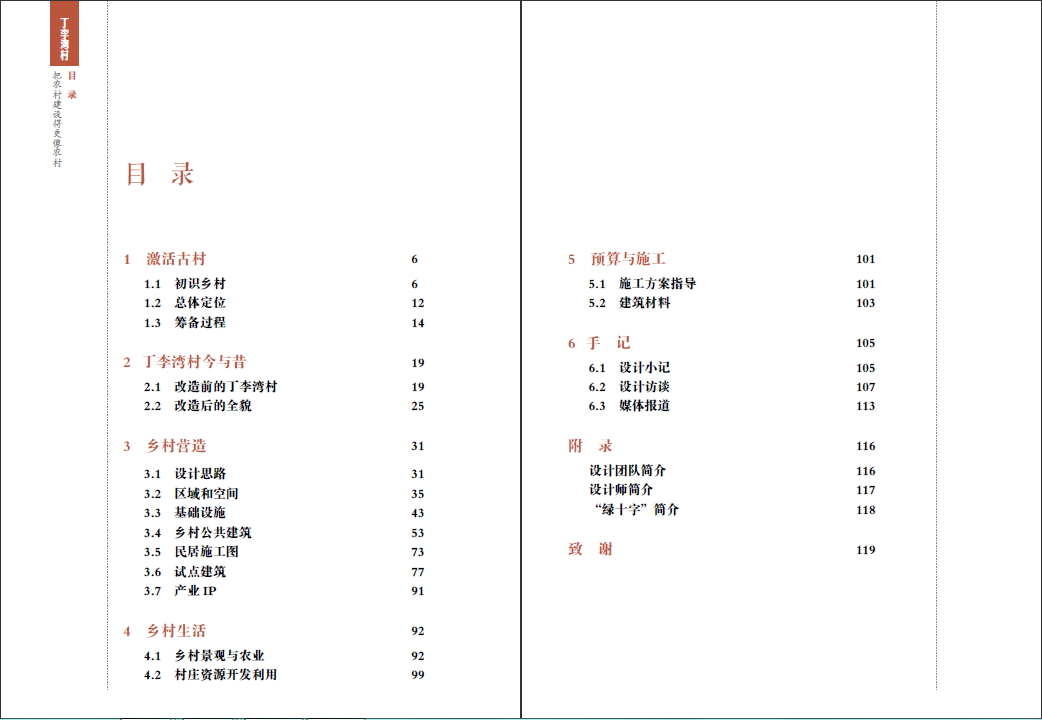 本書(shū)以河南省信陽(yáng)市新縣丁李灣的項(xiàng)目為典型,通過(guò)手稿、照片、設(shè)計(jì)圖、訪談等原始資料全面還原項(xiàng)目的真實(shí)面貌及建設(shè)的全過(guò)程。側(cè)重展示了設(shè)計(jì)師在古村落項(xiàng)目中采用先激活后保護(hù)的手法,盡可能保留古村落原貌的建設(shè)方式。設(shè)計(jì)團(tuán)隊(duì)“上海農(nóng)道”在項(xiàng)目前期調(diào)研所整理的“調(diào)研內(nèi)容樹(shù)狀圖”可為鄉(xiāng)建設(shè)計(jì)師提供不可多得的參考范例。