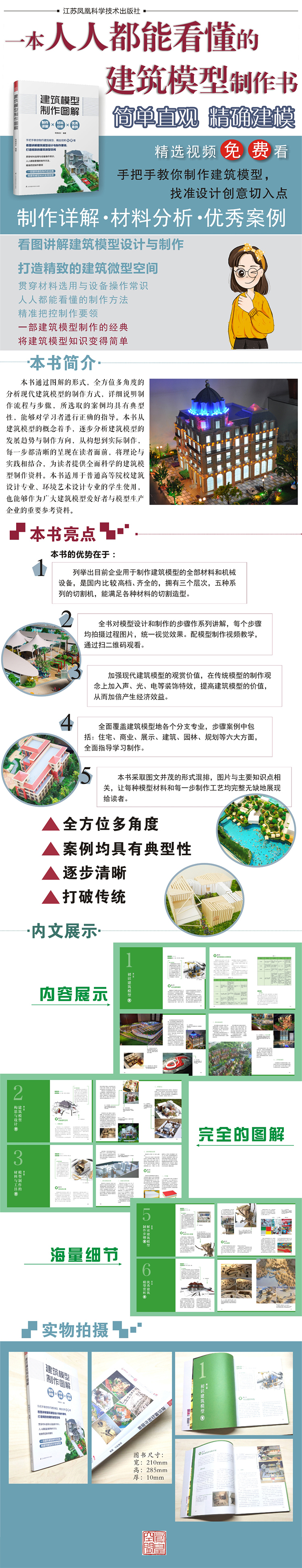 制作模型是建筑設(shè)計(jì)、環(huán)境設(shè)計(jì)、景觀設(shè)計(jì)等專業(yè)必不可少的工作,一個(gè)好的模型作品,能讓設(shè)計(jì)方案迅速獲得甲方的認(rèn)同。本書由多位一線設(shè)計(jì)師、高校老師聯(lián)合編撰,把自己多年的建筑模型制作經(jīng)驗(yàn)傾囊相授。開啟空間想象力、發(fā)動(dòng)積極地動(dòng)手能力,讓我們一起來(lái)制作模型吧。