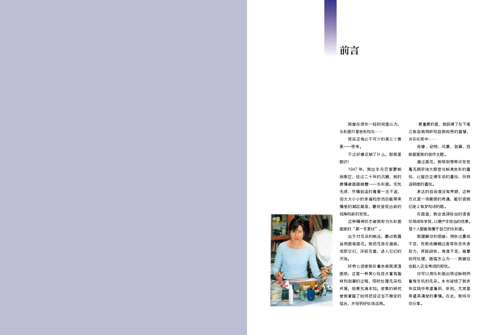 本書以花為主題,講述水彩畫創(chuàng)作的前前后后,使得入門者初窺門徑,進(jìn)階者得到技術(shù)的提升,專業(yè)者能夠?qū)φ諏徱?。全書分為五個(gè)部分,講述了從下筆前的思考、工具的準(zhǔn)備、實(shí)際操作過程中遇到的種種問題,在案例中得到提升。畫風(fēng)絢爛優(yōu)美,有著法國(guó)人獨(dú)有的浪漫清透。