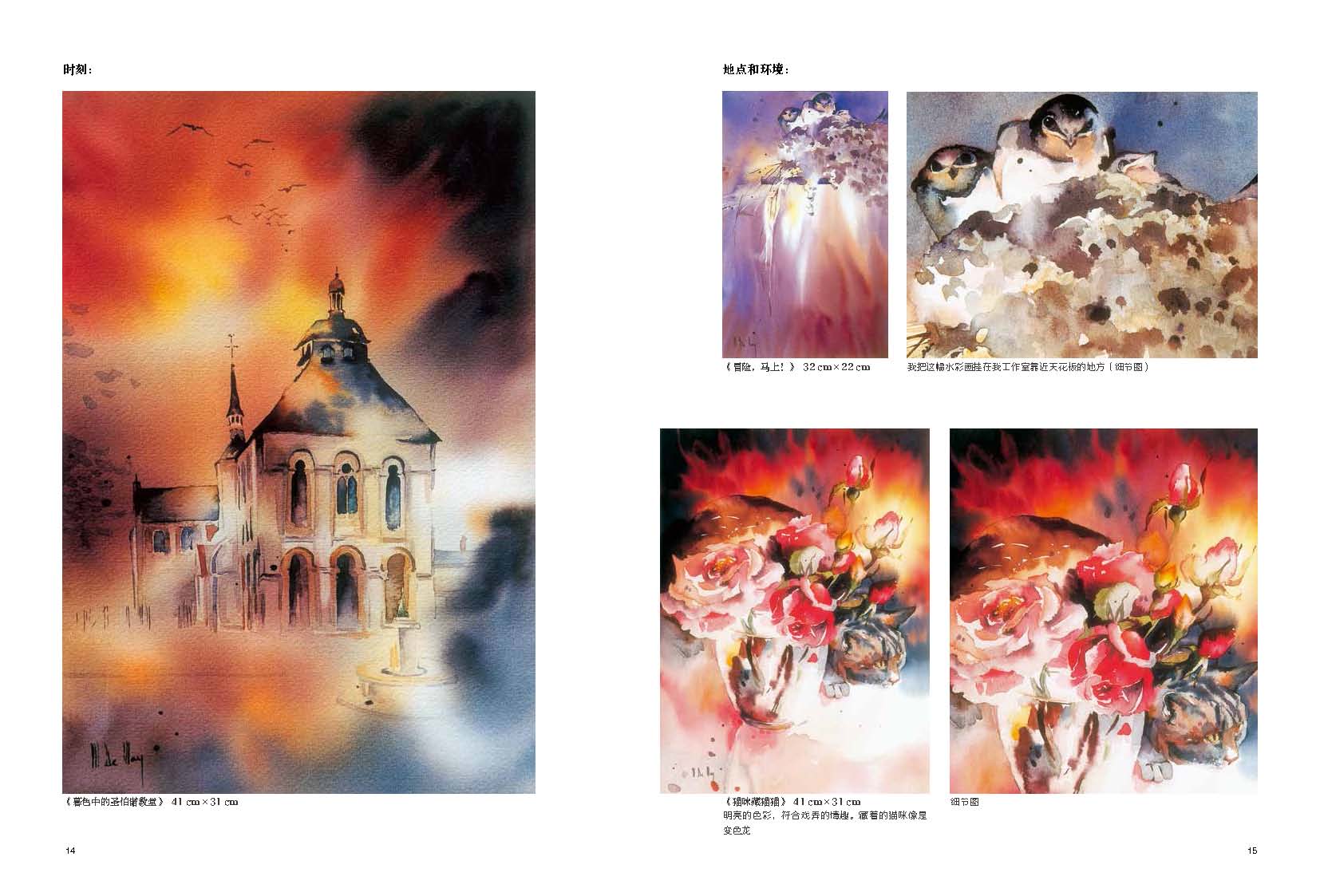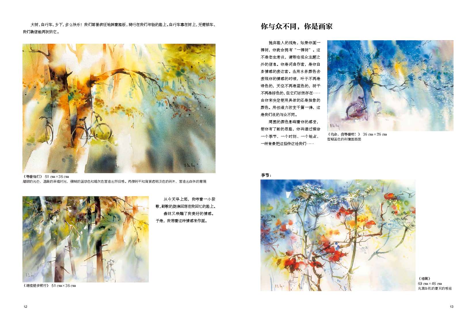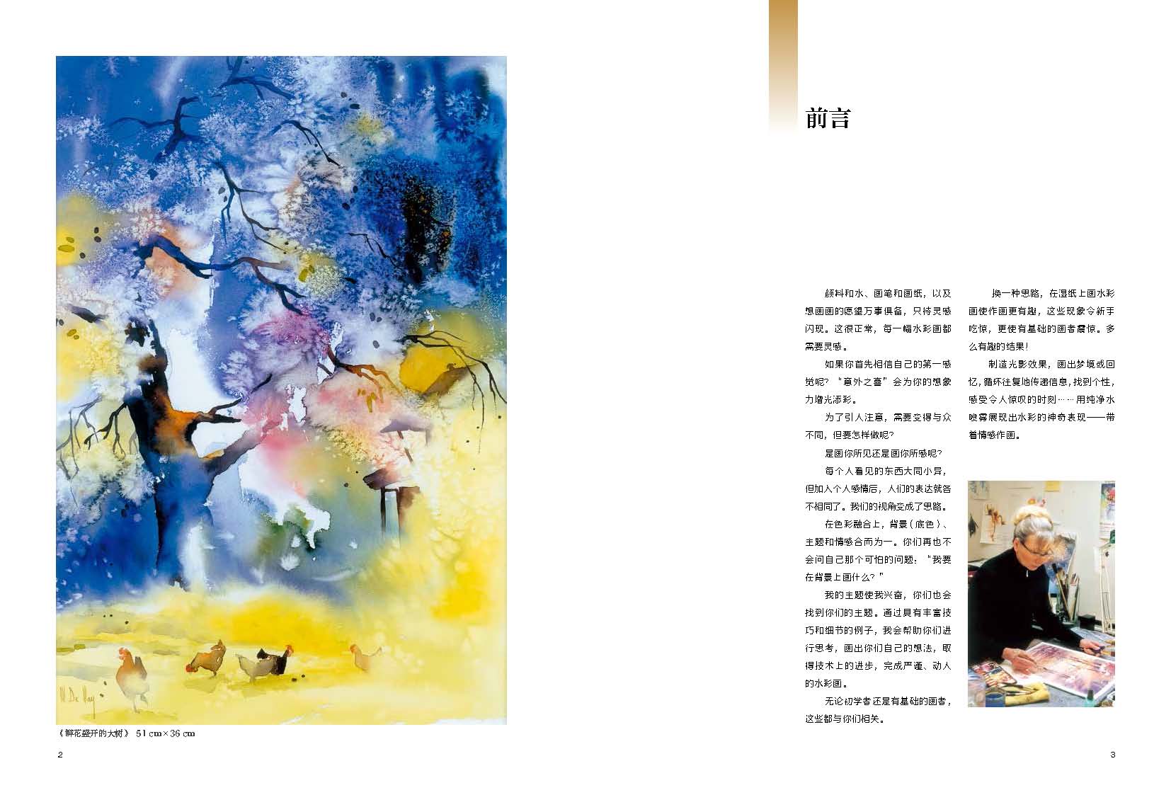 水彩濕畫法使畫作充滿驚喜,是水與色彩之間動人的愛情故事。當(dāng)您閱讀本書, 您將會發(fā)現(xiàn)作畫建議、小竅門和值得思考的問題。