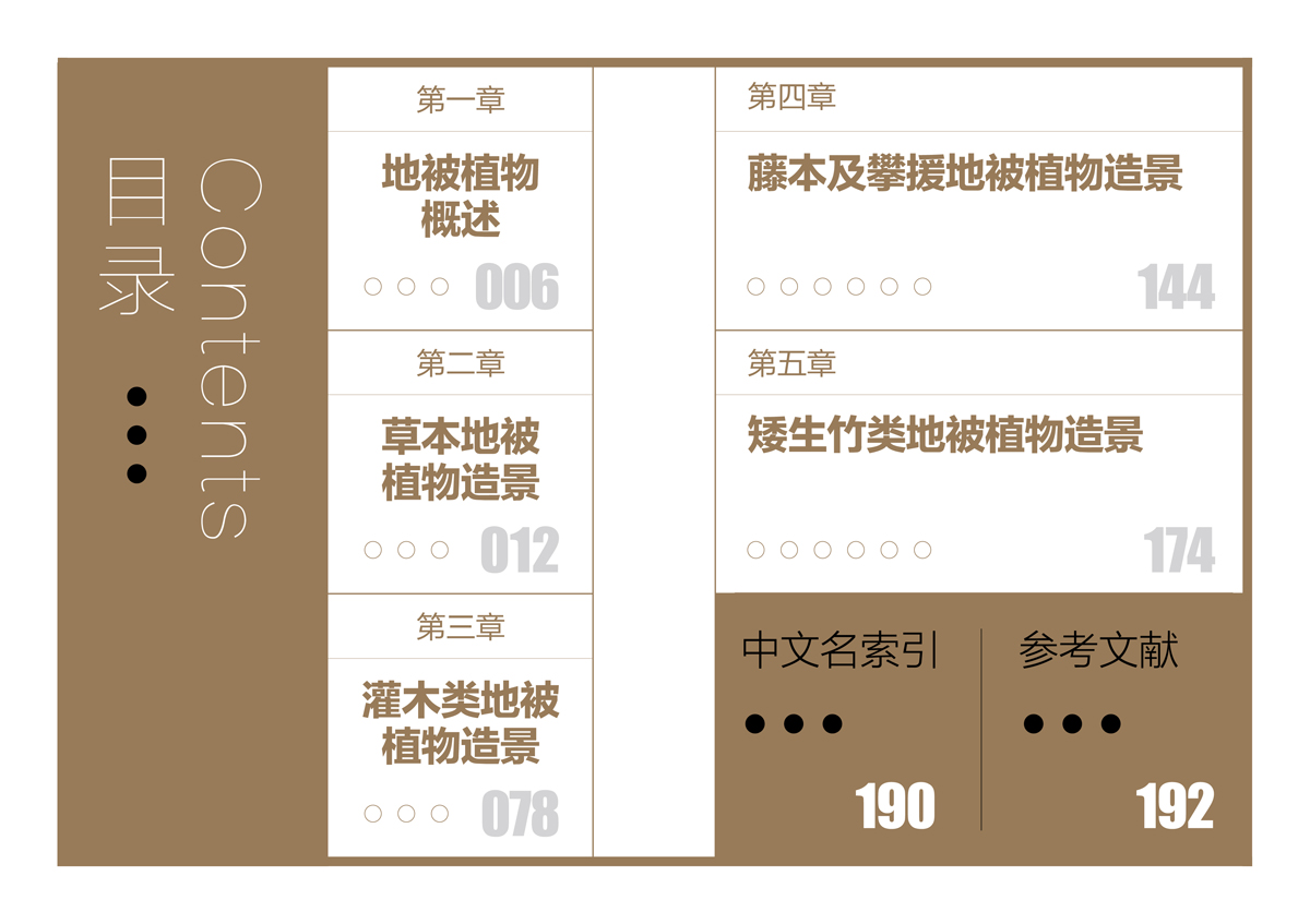 《地被植物景觀》按地被植物的特性和景觀功能分類,分為草本地被植物造景、灌木類地被植物造景、藤本及攀援地被植物造景、矮生竹類地被植物造景,方便園林從業(yè)人員在實(shí)際應(yīng)用中參考借鑒。