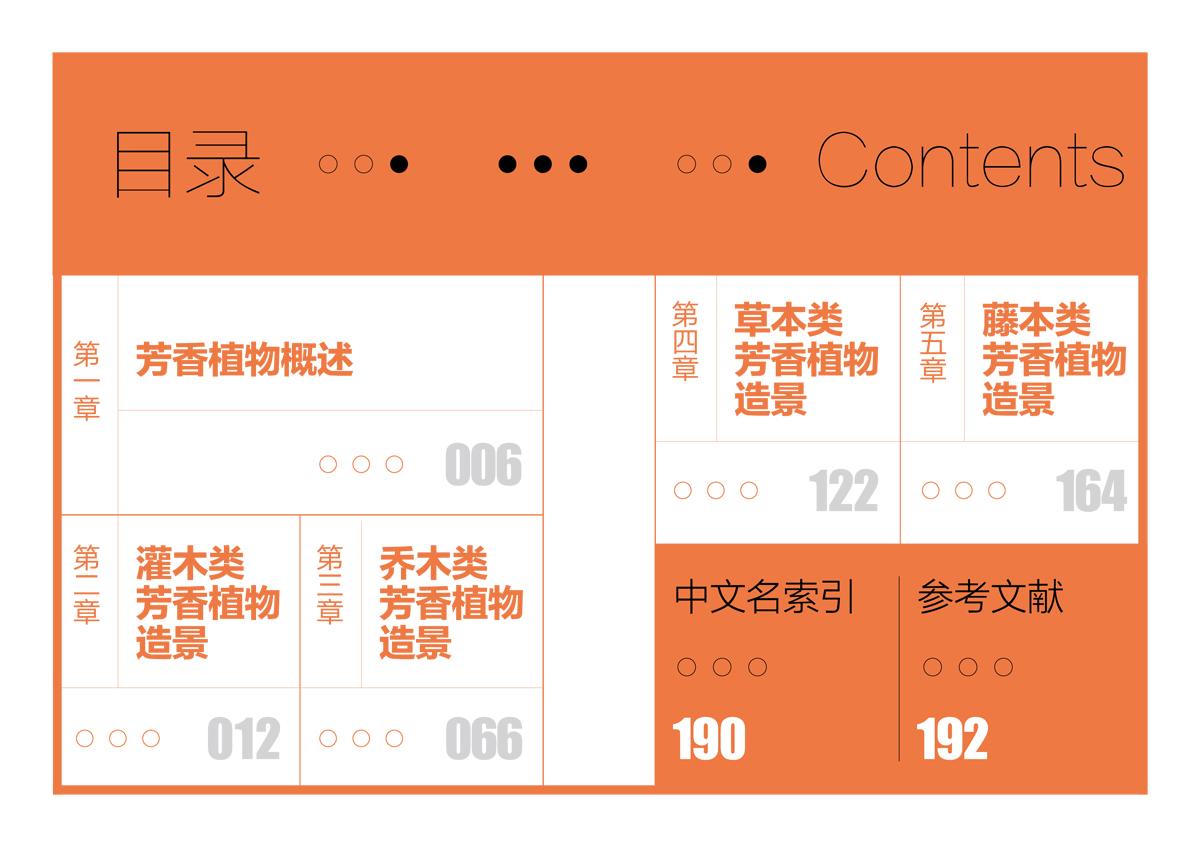 《芳香植物景觀》按植物的特性和景觀功能分類,分為灌木類芳香植物造景、喬木類芳香植物造景、草本類芳香植物造景、藤本類芳香植物造景,方便園林從業(yè)人員在實(shí)際應(yīng)用中參考借鑒。