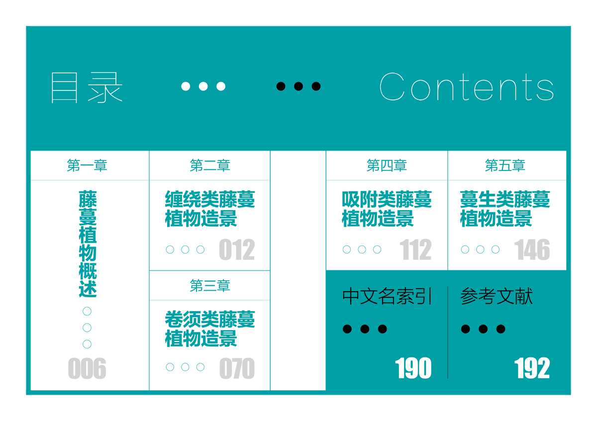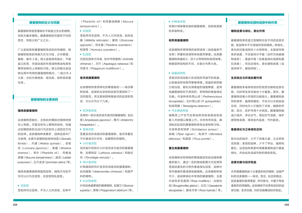 《藤蔓植物景觀》按照植物的特性和景觀功能分類,分為纏繞類藤蔓植物造景、卷須類藤蔓植物造景、吸附類藤蔓植物造景、蔓生類藤蔓植物造景,方便園林從業(yè)人員在實際應(yīng)用中參考借鑒。
