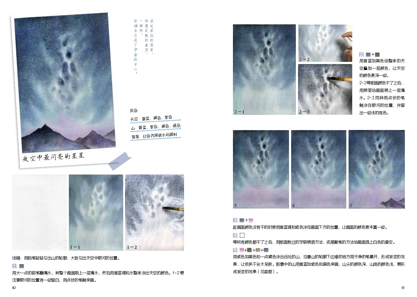 1.本書直擊簡約水彩風景的要義,從基礎學起,作者在畫面構圖布局、質感和層次的表達,一步步教你唯美水彩風景的表達。
