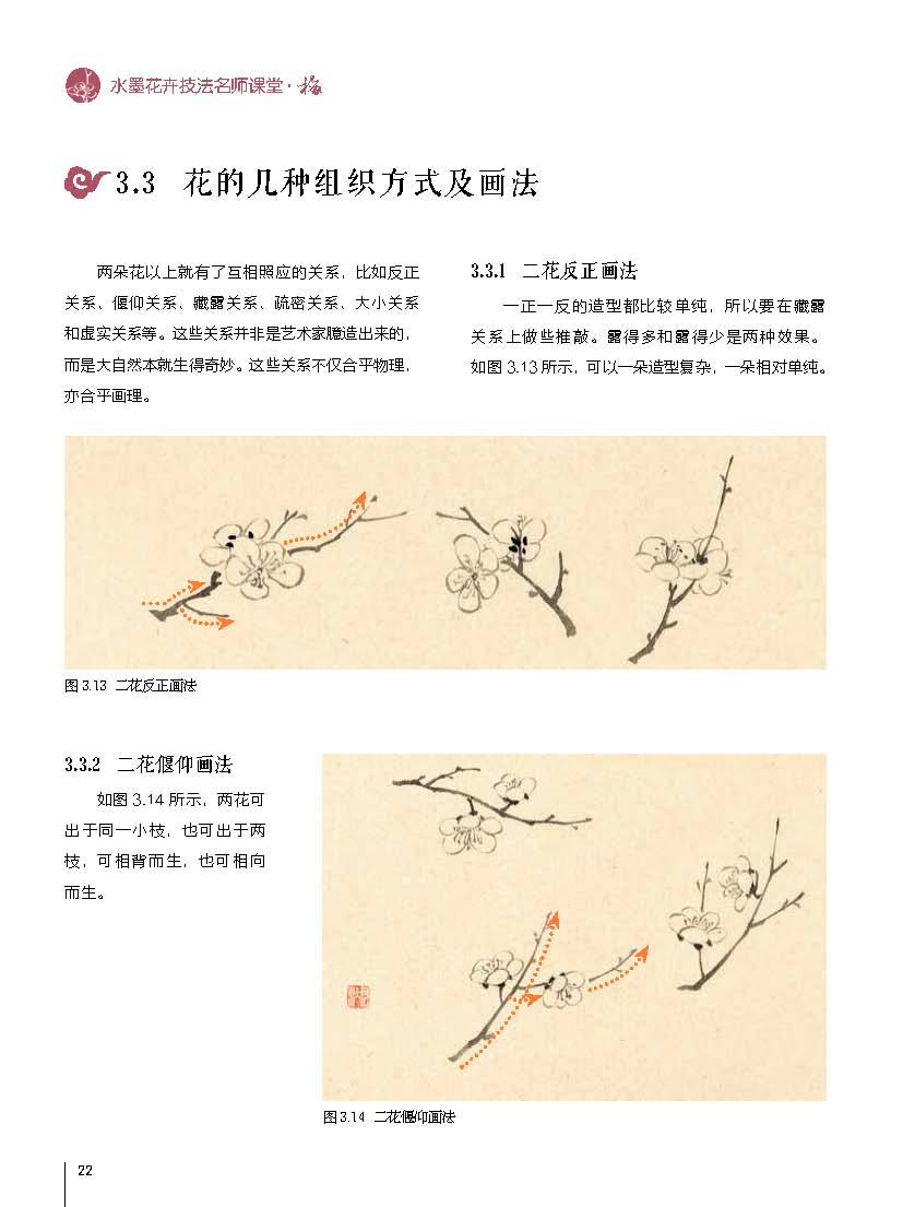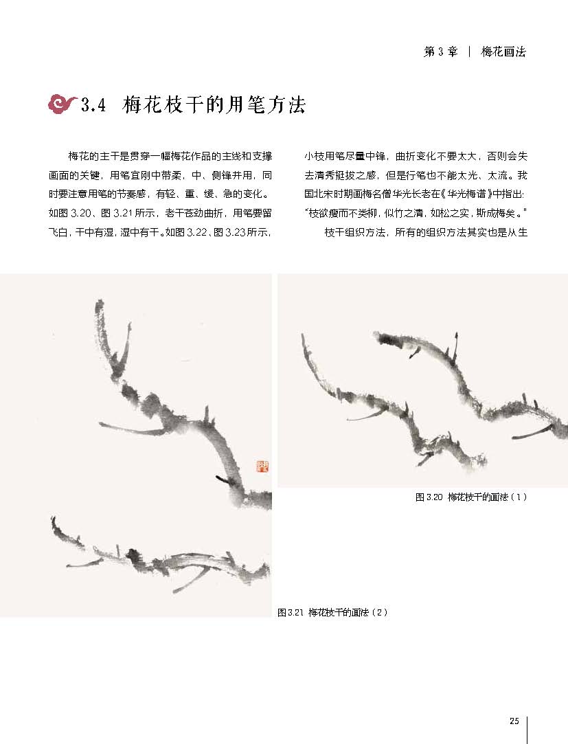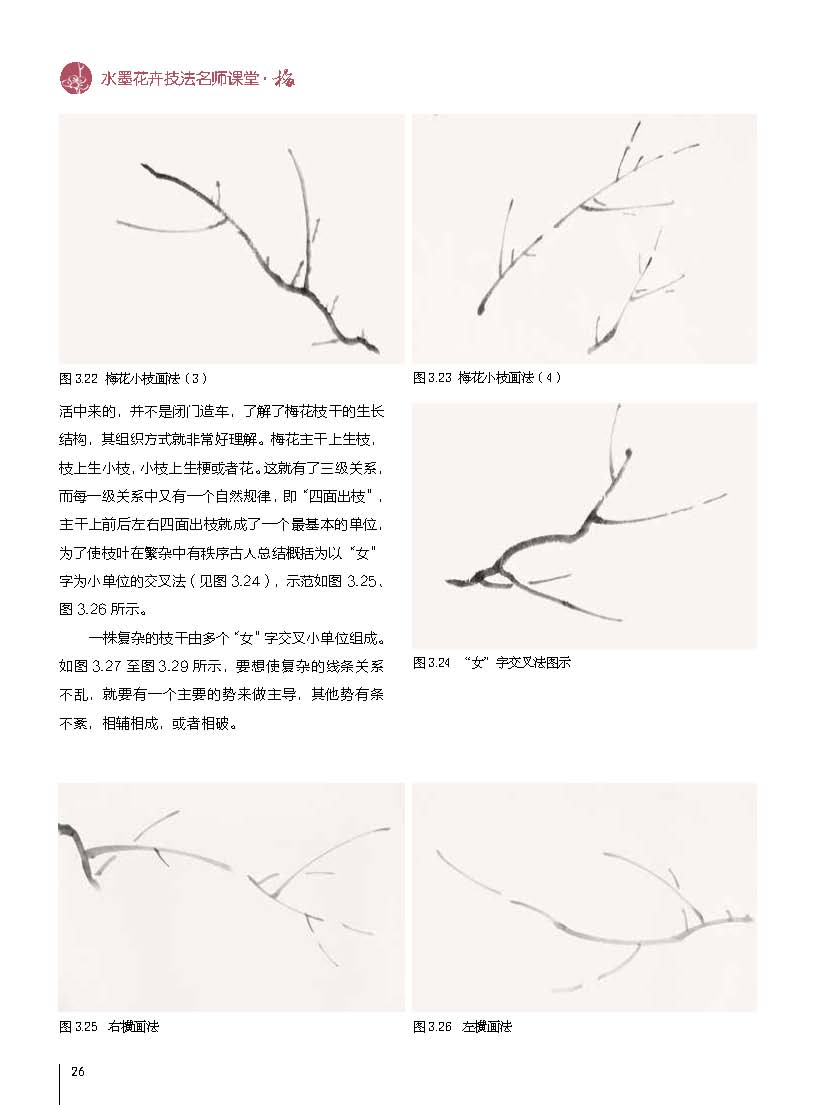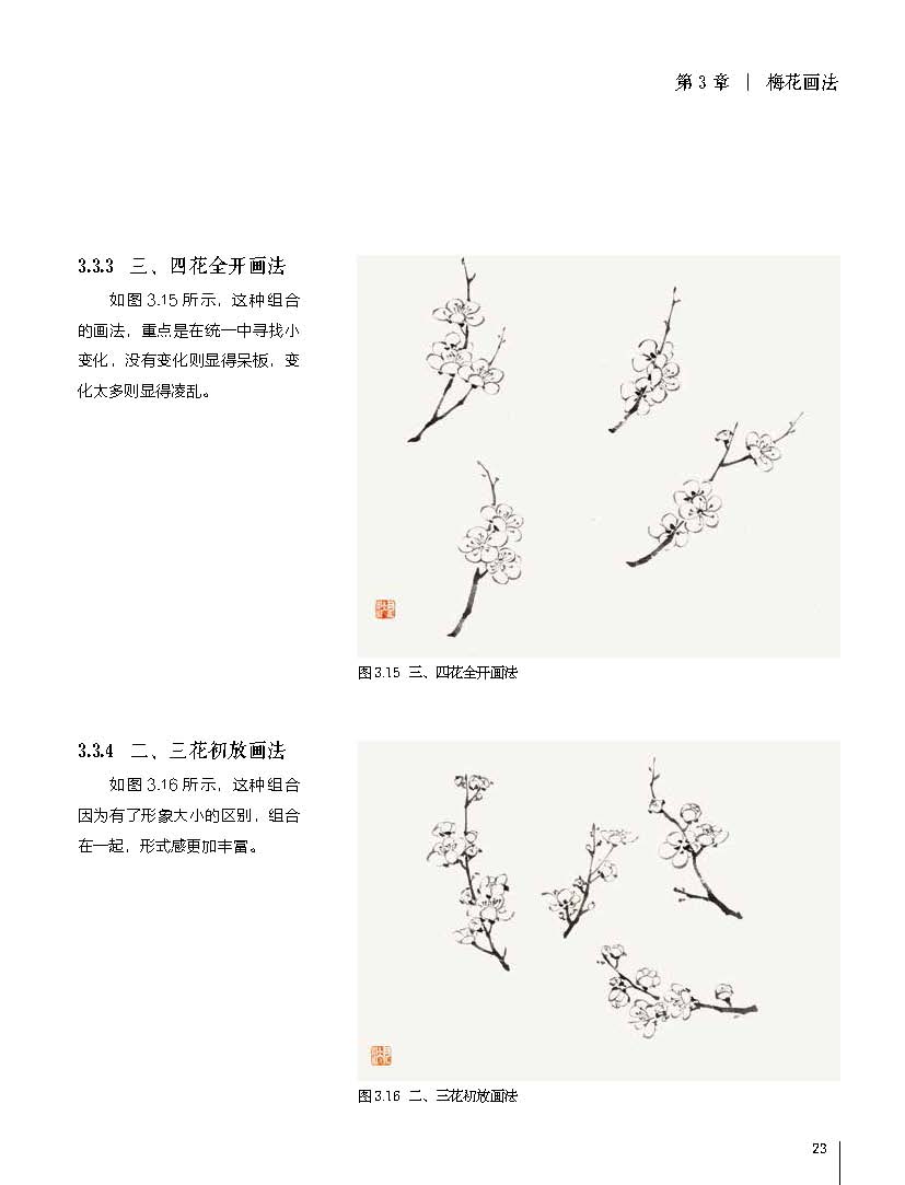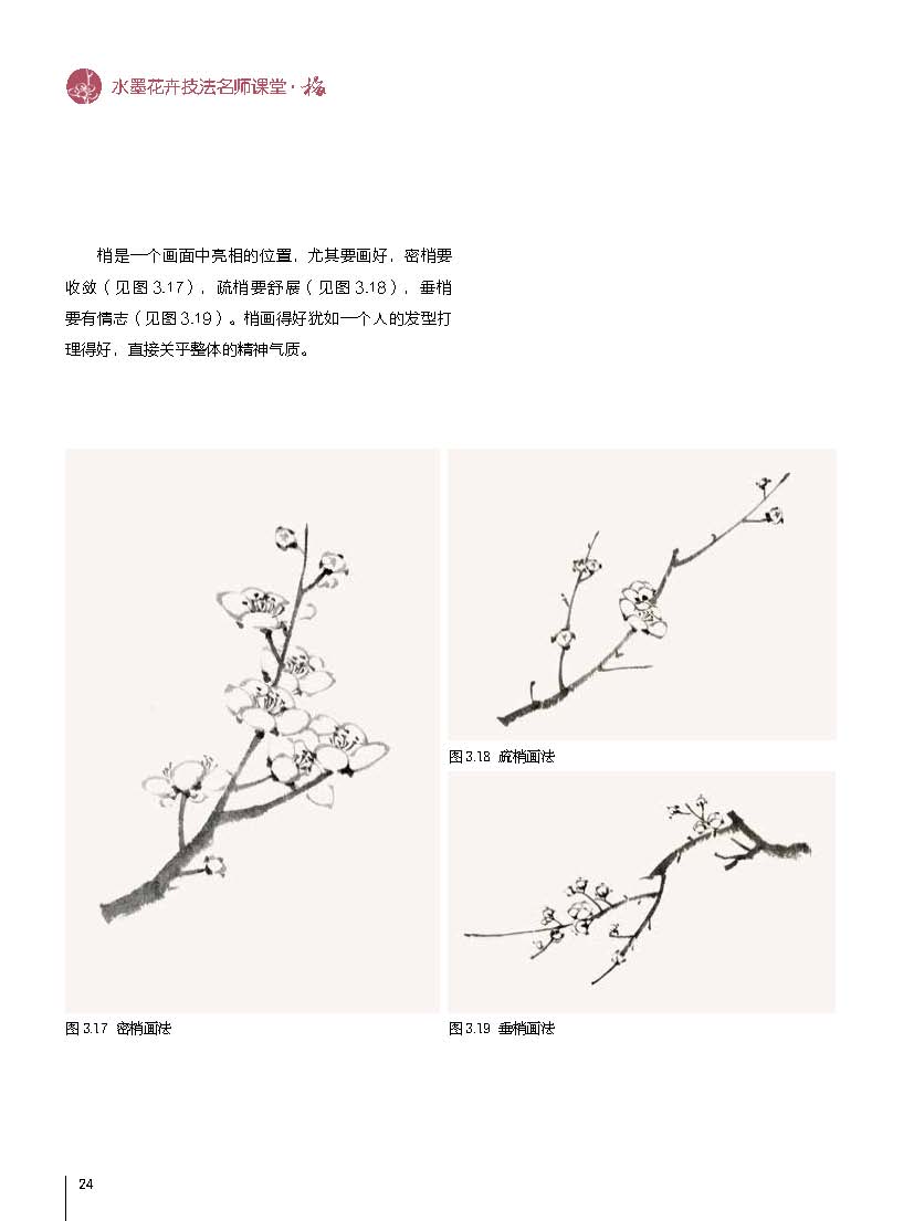 書(shū)中選取了有“歲寒三友”之稱的梅花,向?qū)W畫(huà)者展示梅花斗雪吐艷,凌寒留香,鐵骨冰心,高風(fēng)亮節(jié)等特點(diǎn)。