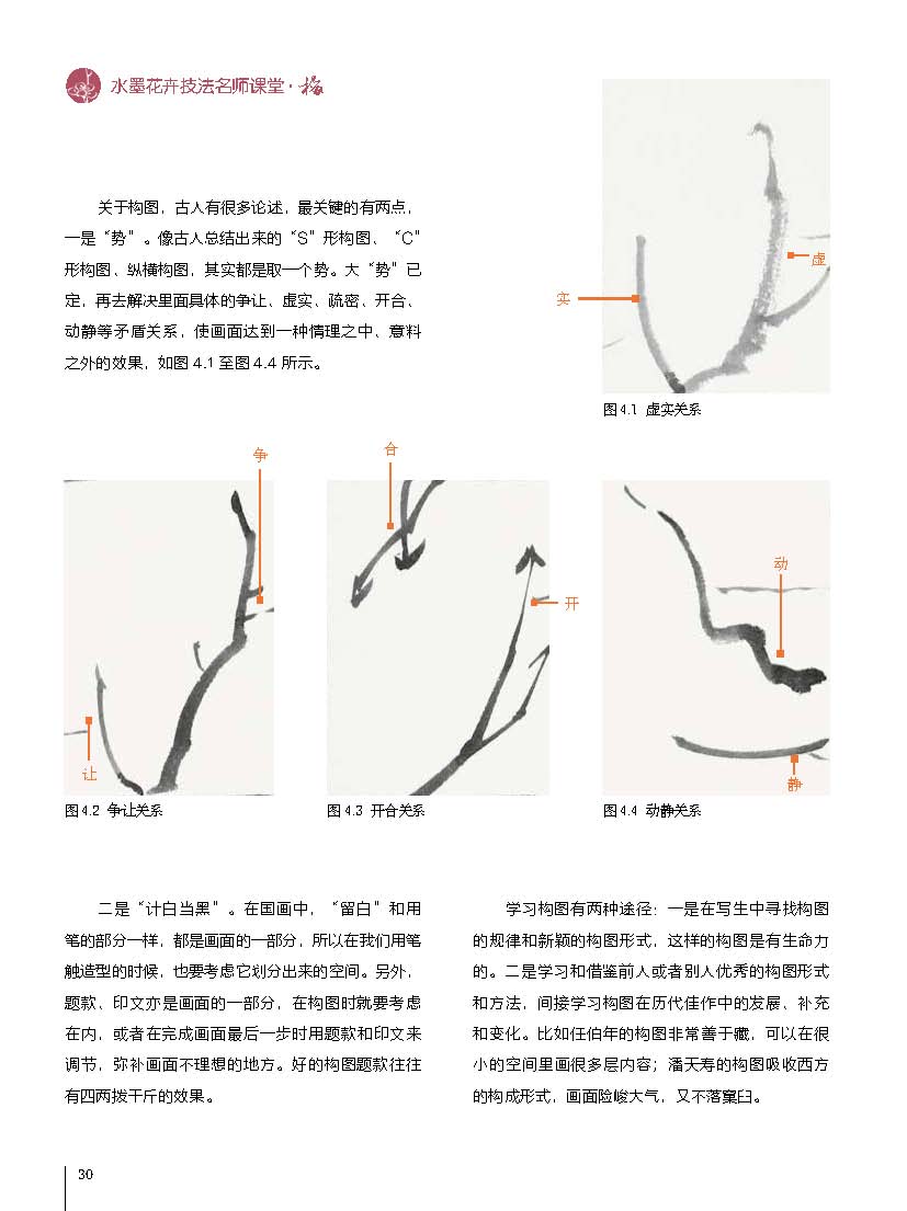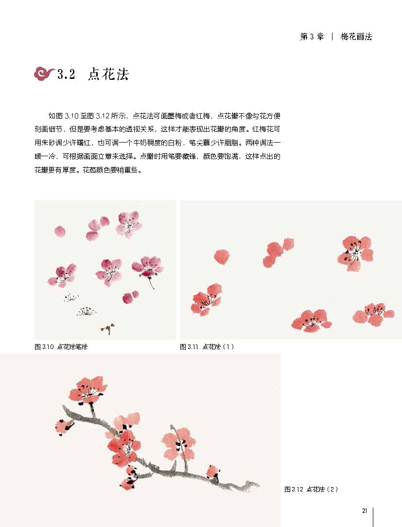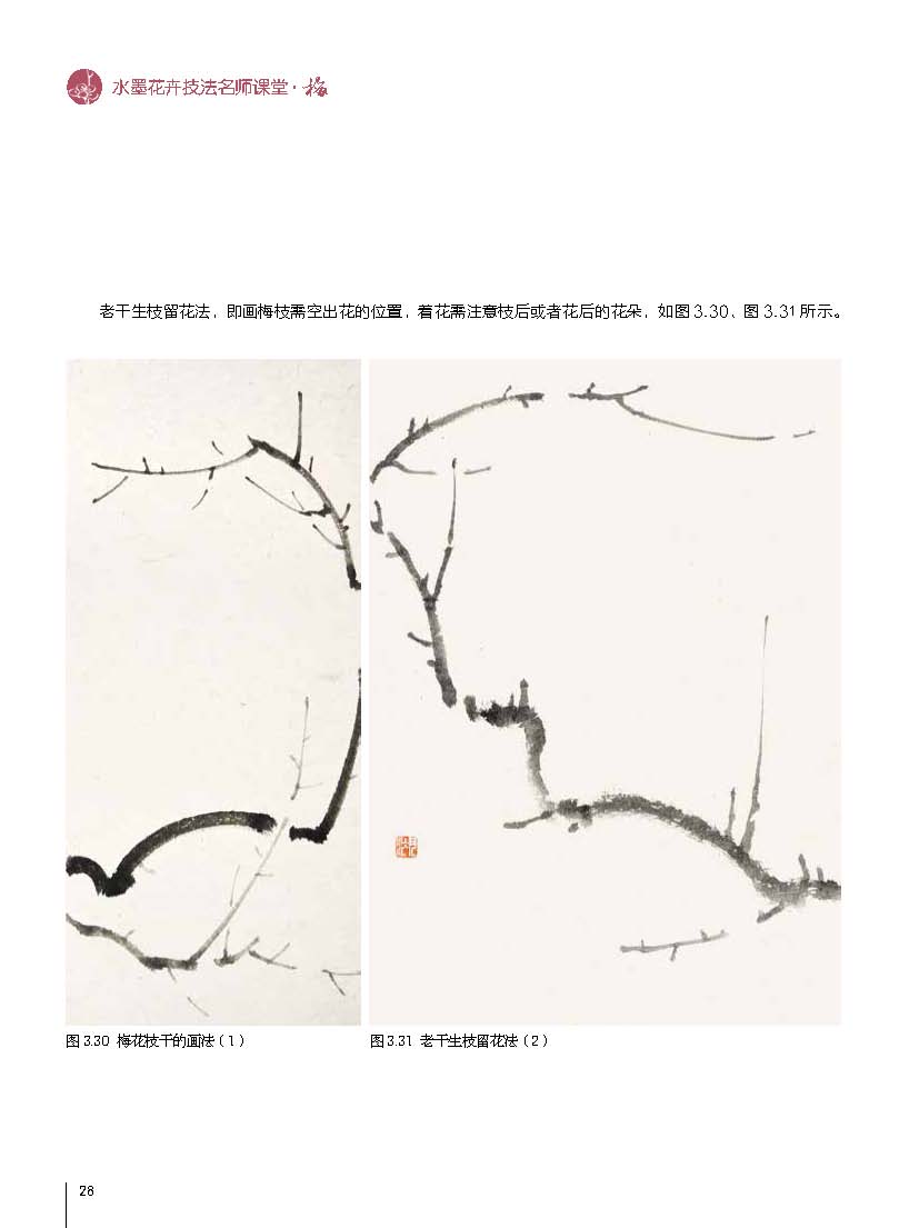 采用步驟圖形式講解,詳細(xì)介紹梅花的作畫(huà)要點(diǎn)和構(gòu)圖布局,打破新手創(chuàng)作難的局面,讓初學(xué)者也能輕松畫(huà)出屬于自己的完整作品。