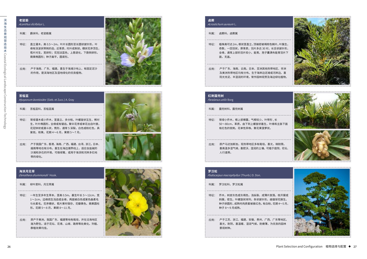 本書系統(tǒng)地分析了現(xiàn)階段濱海生態(tài)景觀營(yíng)造中存在的問(wèn)題,結(jié)合華南濱海地區(qū)特殊的自然生態(tài)環(huán)境,從景觀設(shè)計(jì)原則、植物選擇、植物配置、土壤改良、喬木移植技術(shù)及養(yǎng)護(hù)管理等方面進(jìn)行了總結(jié),供園林行業(yè)業(yè)內(nèi)人士參考應(yīng)用,以期為華南濱海地區(qū)生態(tài)環(huán)境改善和生態(tài)景觀建設(shè)提供技術(shù)支持。