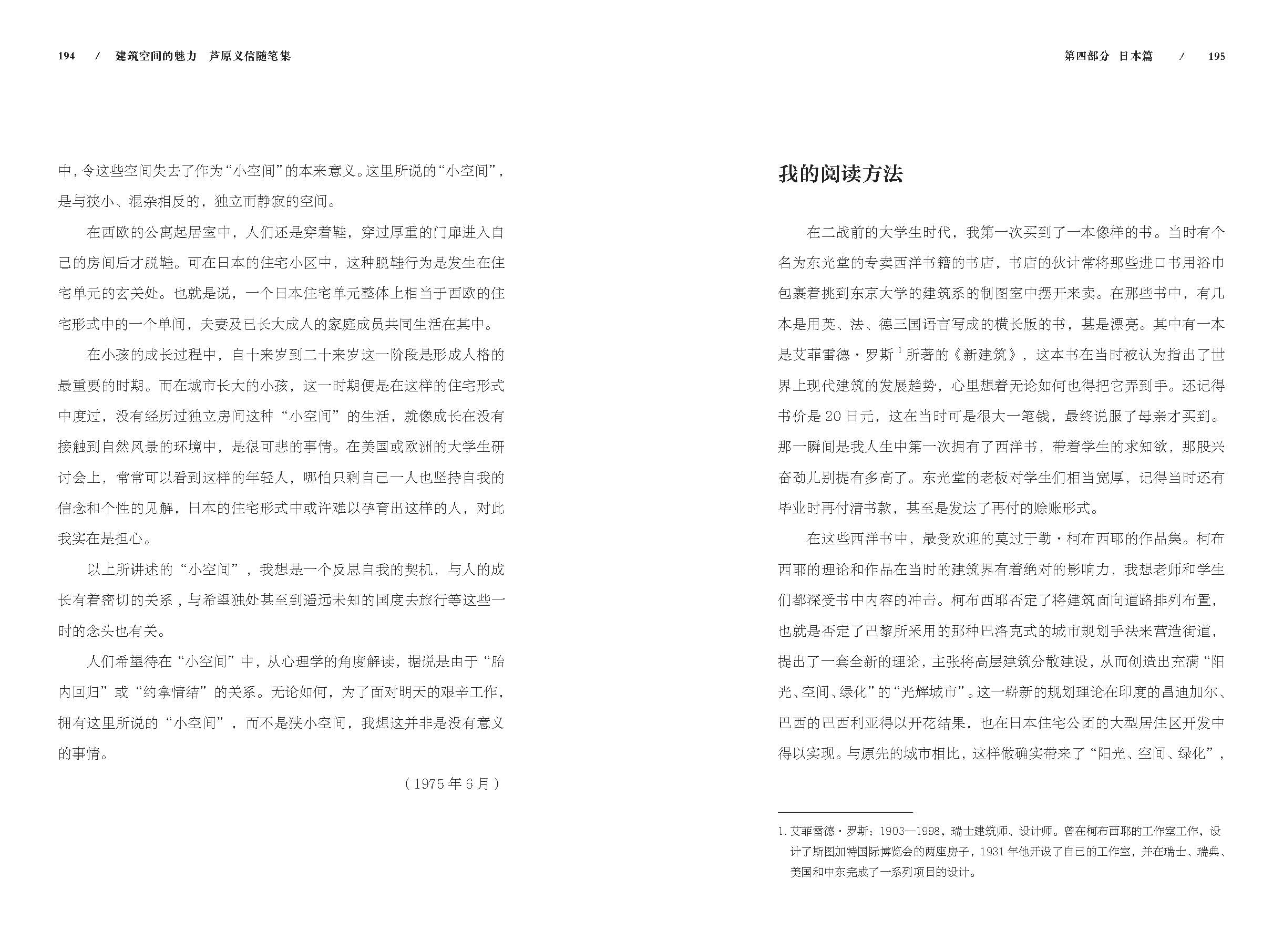 《建筑空間的魅力——蘆原義信隨筆集》是由蘆原義信的著作《閣樓上的小書齋》 《建筑空間的魅力——我的體驗(yàn)》和《探索秩序》精選而成,按“關(guān)于城市與建筑的研究”和“人生體驗(yàn)記”的上下卷進(jìn)行重構(gòu),希望給讀者在內(nèi)容上、分類上以更綜合的閱讀感受,從而得以清晰地?cái)z取蘆原義信先生所表述的理論和觀點(diǎn)。