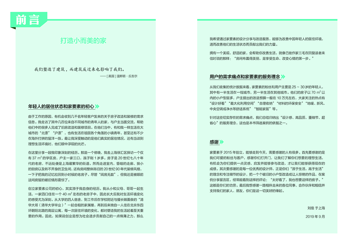 現(xiàn)代裝修重要的項目,也是戶主們最關(guān)注的各種項目,如衛(wèi)生間干濕分離、餐廚一體化、玄關(guān)儀式感,還有合理的生活動線、美觀的配色及軟裝,都在本書案例中有所體現(xiàn),至于收納這個不可或缺的功能,本書會用實例告訴你,小戶型能有500個登機箱的收納容量!