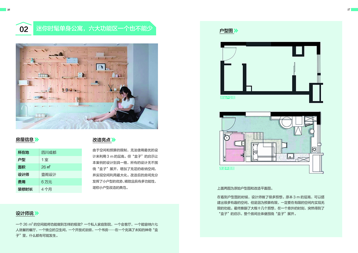 本書精選23個案例,有各種“災(zāi)難戶型”,甚至還有“地獄級戶型”的難度挑戰(zhàn),然而經(jīng)過精心設(shè)計,在不破壞建筑結(jié)構(gòu)的基礎(chǔ)上,設(shè)計師將空間整合一體化,重新布局,合理劃分功能區(qū),打造多功能的空間,甚至還能為戶主實現(xiàn)衣帽間、跳舞長廊的愿望,讓小戶型麻雀雖小,也能五臟俱全!