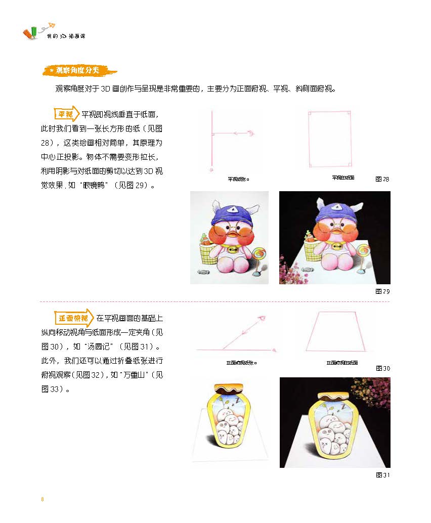 本書對3D立體彩鉛插畫的教授非常詳盡,從最基礎(chǔ)的工具、線條、配色到幾何形體和空間場景,全部配有詳盡的照片,一看就懂,讓讀者可以輕松地跟著步驟畫出有趣立體的3D插畫。選取的案例都是大眾熟悉有喜愛的萌系圖案,符合定位讀者群體的閱讀偏好。