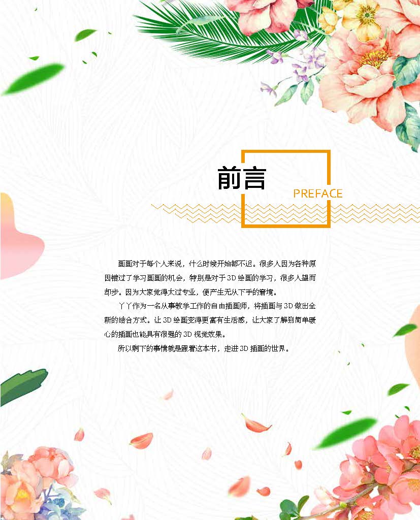 本書詳細(xì)介紹了3D立體彩鉛插畫的技法。全書分五個(gè)章節(jié),從基礎(chǔ)篇的3D畫概念,繪畫使用工具及繪畫技法講起,結(jié)合4章18個(gè)案例,即幾何形體篇案例、暖心萌物篇案例、技能提升篇案例和空間場景篇案例由淺入深地詳細(xì)講解了3D插畫技法與步驟,讓讀者可以輕松地跟著步驟畫出有趣立體的3D插畫。