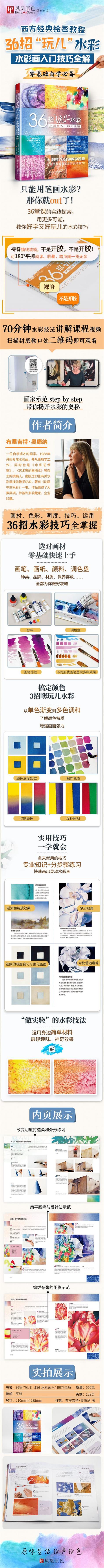 材料、色彩、明度、繪畫技巧……通過36堂課的實踐探索帶你認識全新的水彩世界!步驟圖配合文字,詳細得像是和作者面對面。超大圖示清晰直接,教你分分鐘了解繪畫的專業(yè)知識,翻開這本書,里面只有你想不到的,沒有作者教不到的。作者這種盡心盡力又體貼周到的風格,簡直就是水彩書籍中的一股清流!