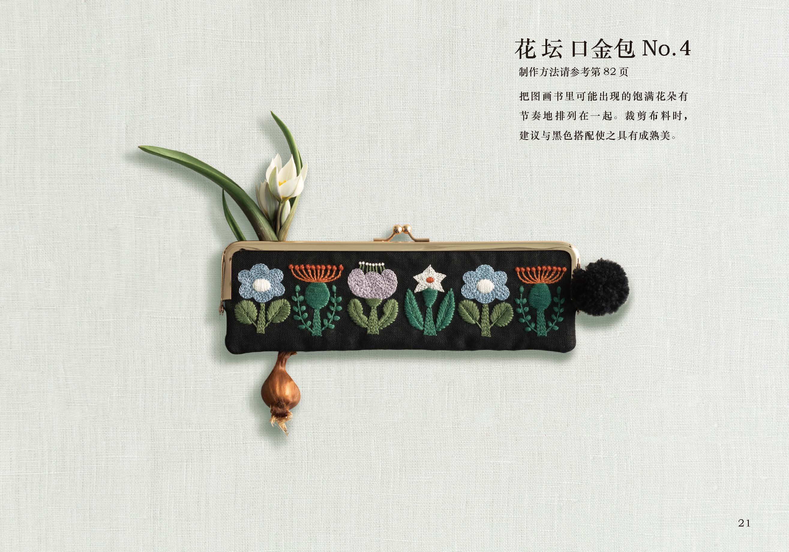 《刺繡入門教程:樋口愉美子的刺繡口金包》是一本刺繡和口金包結(jié)合的手工類書籍。本書主要分為兩部分內(nèi)容,成品展示及案例的具體制作內(nèi)容。本書的特點(diǎn)是將復(fù)雜的刺繡簡(jiǎn)約化,在亞麻布和棉布為底部的基礎(chǔ)上的刺繡,手法簡(jiǎn)單易懂,簡(jiǎn)單的刺繡針法就可在較短的時(shí)間內(nèi)做出一幅精美的作品。全書作者運(yùn)用9種大小型號(hào)不同的口金包,配合簡(jiǎn)單的刺繡作品,制作出25種風(fēng)格各異的口金包作品,圖案以動(dòng)物和植物為主題,配合可愛的人物圖案。25種作品的制作方法都有詳細(xì)的講解過程。對(duì)布料配色也有講解,本書每個(gè)案例都有原大紙型、原大圖案、簡(jiǎn)單的配色和基礎(chǔ)針法,即使是初學(xué)者也可輕松上手。