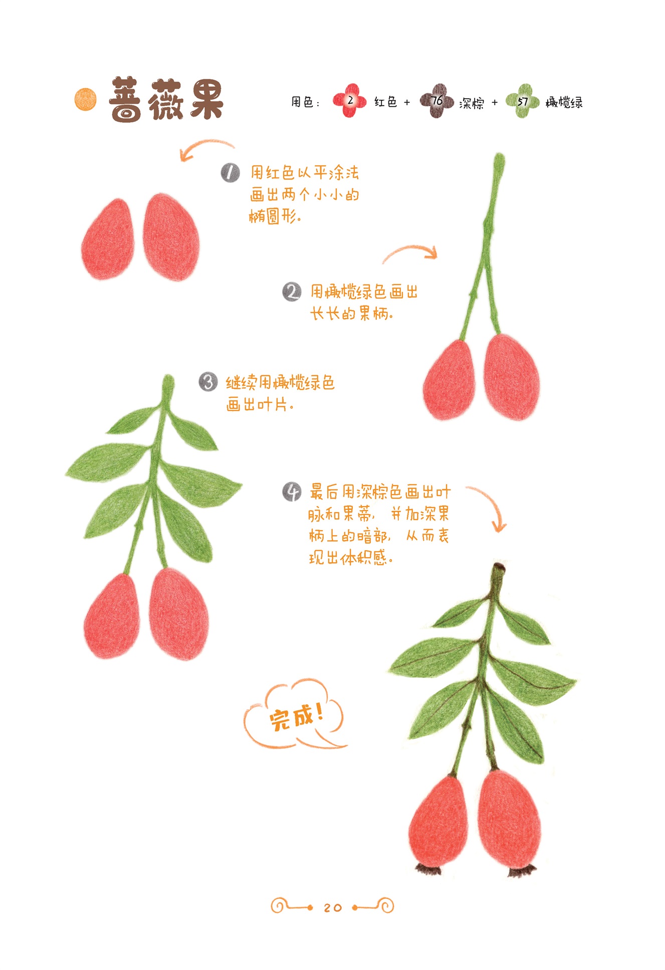5.步驟講解清晰簡(jiǎn)單,百余種美食插畫(huà)的特征總結(jié)和技巧分享。以及舉一反三,掌握自由組合的色彩搭配訣竅。