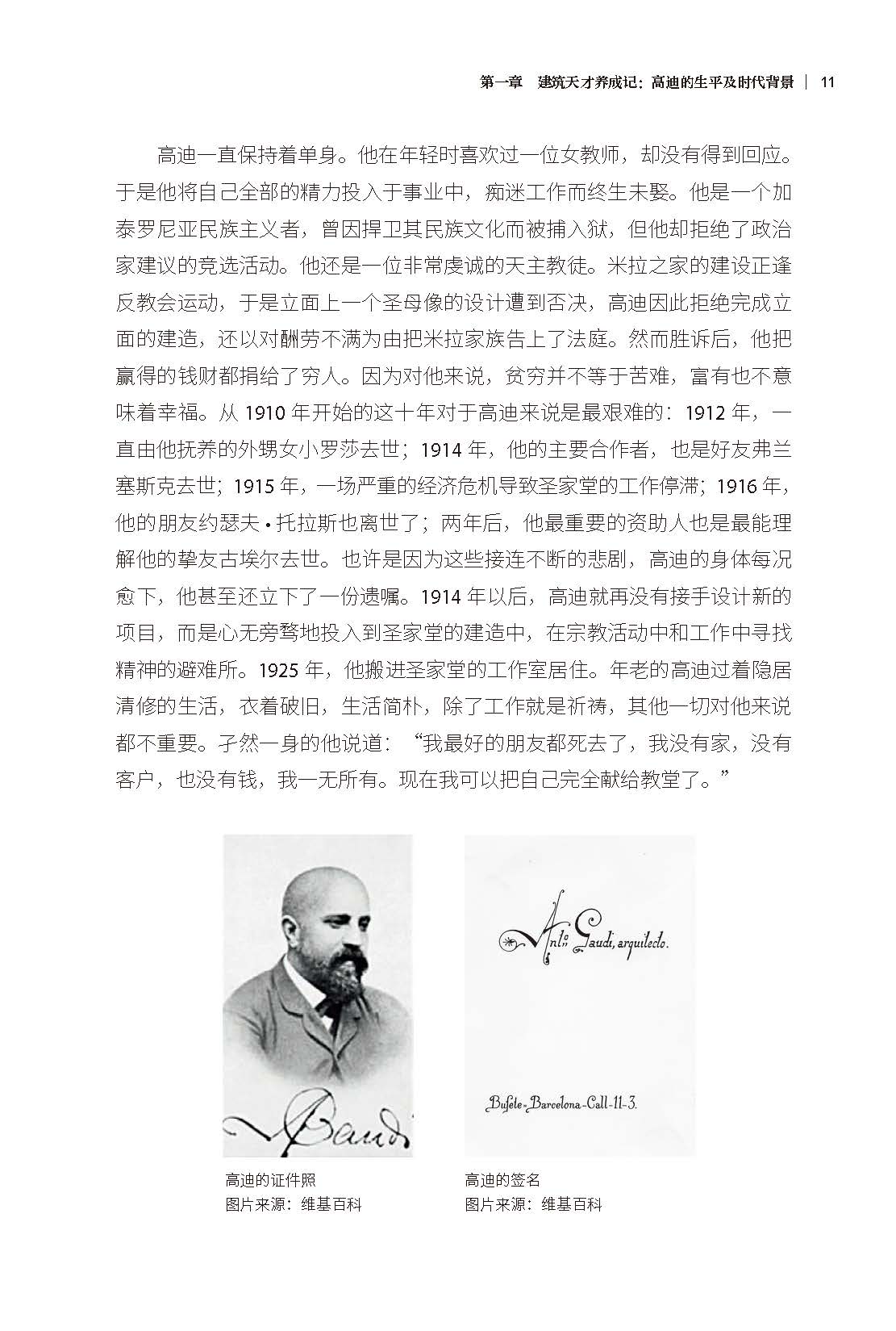 高迪的一生作而不述,僅僅留下只言片語,但他的思想?yún)s在其作品中時刻閃耀著智慧的光芒。國內(nèi)現(xiàn)已出版的相關(guān)著作,大多是以畫冊的方式呈現(xiàn)高迪的作品,讓我們很容易陷入美學(xué)式的推論,誤認(rèn)為高迪的作品僅僅是一場視覺上的盛宴。但其實(shí)在令人稱奇的造型背后,高迪的建筑也有著縝密的設(shè)計邏輯和理性的結(jié)構(gòu)思考。他在技術(shù)與藝術(shù)之間找到了一種精妙的平衡,成為一代建筑大師。高迪的成就和天才是難以復(fù)制的,但他的設(shè)計理念和方法是值得我們深思的。