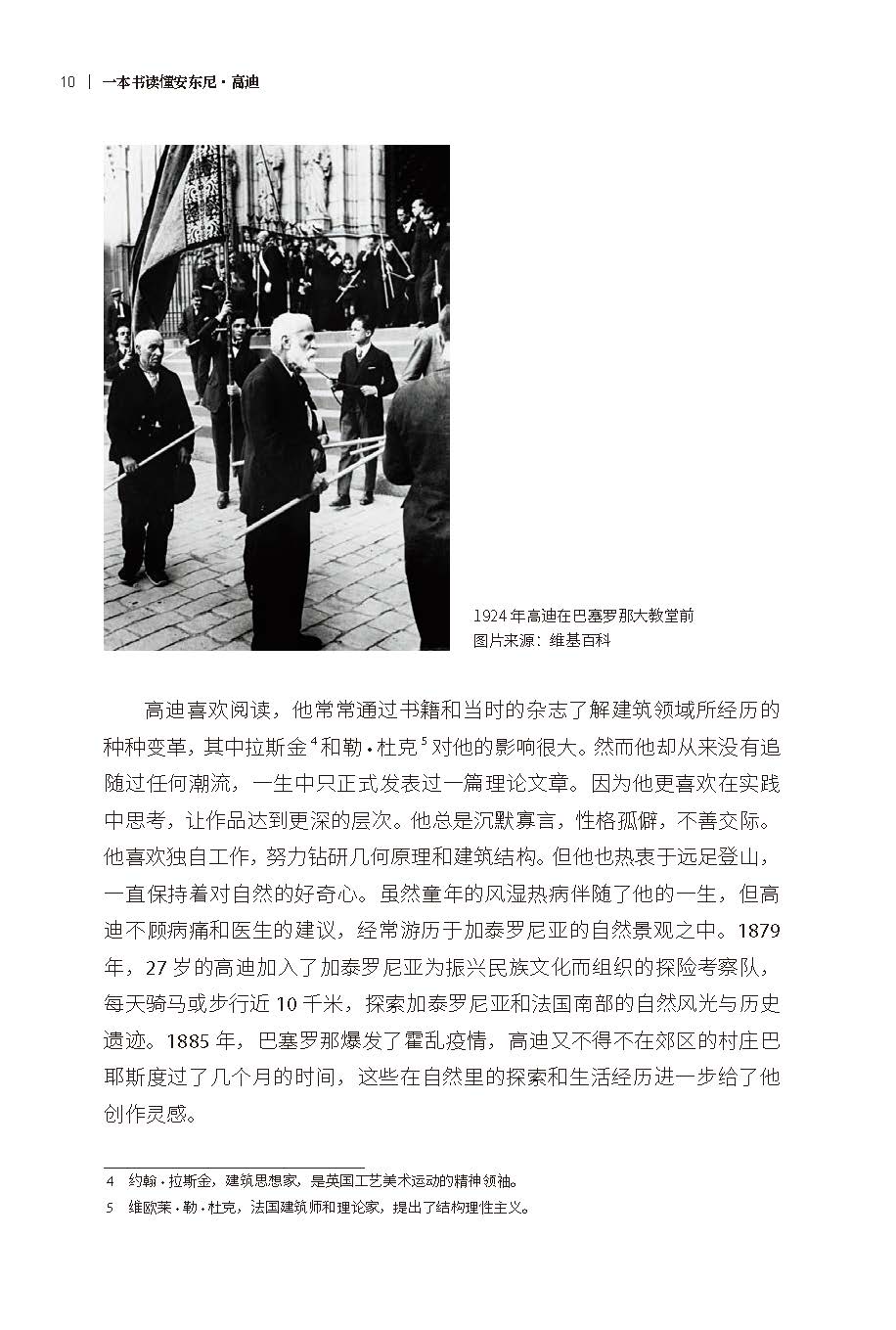 本書的作者用了五年的時間,追隨高迪的足跡,在他曾經(jīng)學(xué)習(xí)過的建筑學(xué)校收集資料,在他留下最多作品的城市實(shí)地考察,匯集成本書。無論是作為學(xué)習(xí)用書、圖片資料集還是建筑旅行攻略,各類讀者都能在該書中有所收獲。