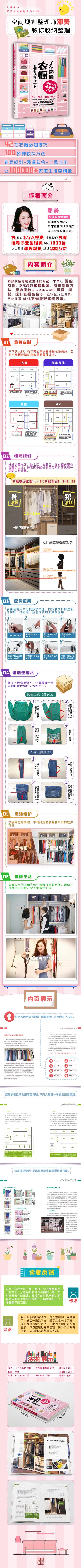 在這本書中,整理師鄧美從選購衣櫥入手,到衣櫥的格局規(guī)劃、整理方法、清潔保養(yǎng)以及各類衣物的折疊、衣服的搭配、提升衣櫥品位等,全方位向讀者介紹關于衣櫥收納整理的內容。全書分為六章:為什么你的衣櫥總是這么亂,“扔”出來的精致衣櫥,提高衣櫥空間利用率的奧秘,學會這些你也可以做衣櫥布局規(guī)劃師,從衣櫥“納”出精致人生態(tài)度,整理讓生活更精致。
