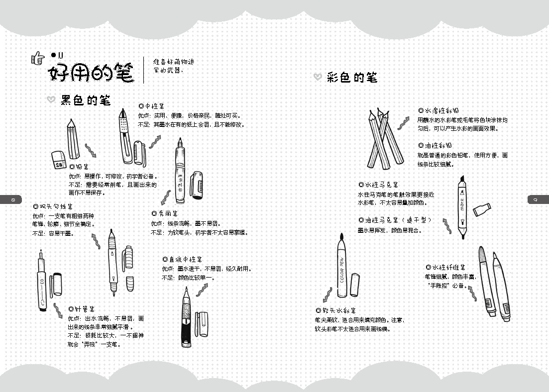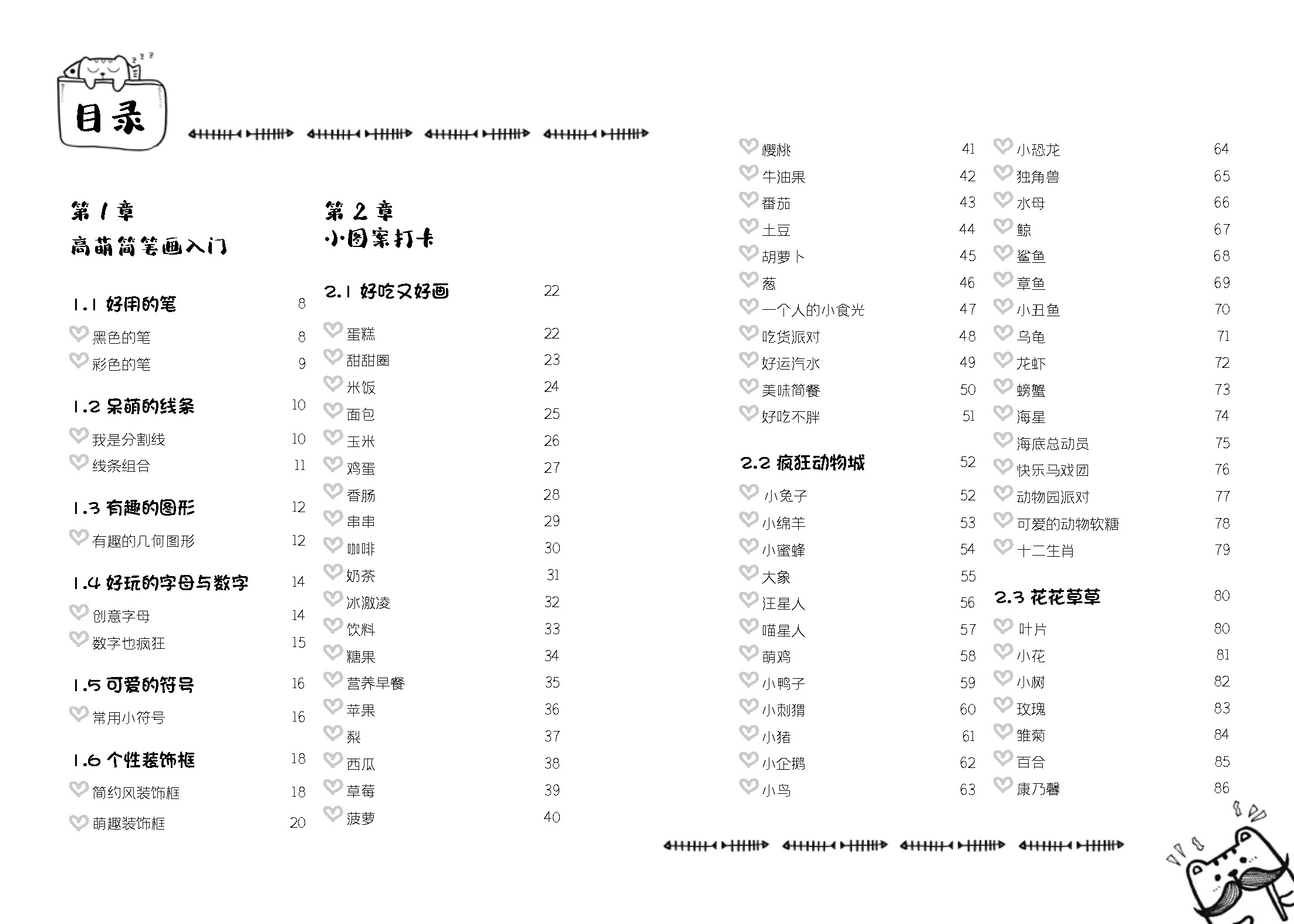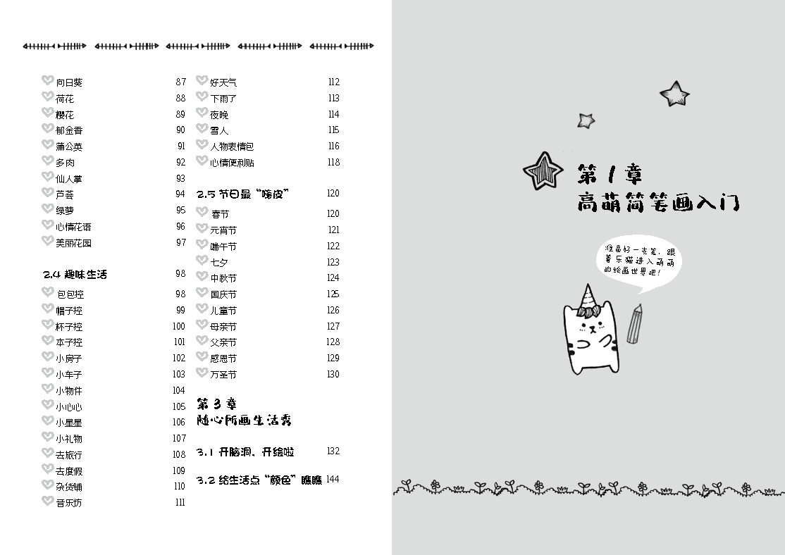 4.作者獨(dú)有的三步教學(xué)總結(jié)和技巧分享??梢宰屪x者舉一反十,用一支筆就可以自由創(chuàng)作可愛手繪。