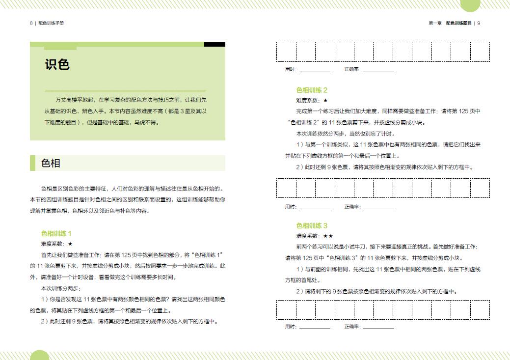 《配色訓練手冊》既含理論基礎,又有實用系統(tǒng)的訓練題目,保證讓您迅速提升配色能力!市面上的圖書多以配色原理、主題速查、配色方案為主,讀者看完有所收獲,但在實際應用過程中,依然感到力不從心,究其原因,還是實踐經(jīng)驗不足?!杜渖柧毷謨浴芬耘渖毩暈橹?,以練代學,讓讀者在實踐中找尋適合自己的配色方法與技巧。