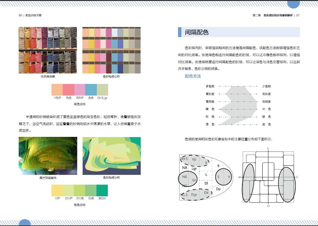 理論基礎以日本色彩設計研究所(NCD)研發(fā)的色彩系統(tǒng)之上,涵蓋配色訓練題目;色彩基礎理論,包括色彩發(fā)展歷史、色彩常識、相關案例解析及配色方法與技巧;配色訓練素材。希望通過系統(tǒng)的認色、識色、配色練習與應用實踐等環(huán)節(jié),讓讀者真正掌握配色原理與技巧。