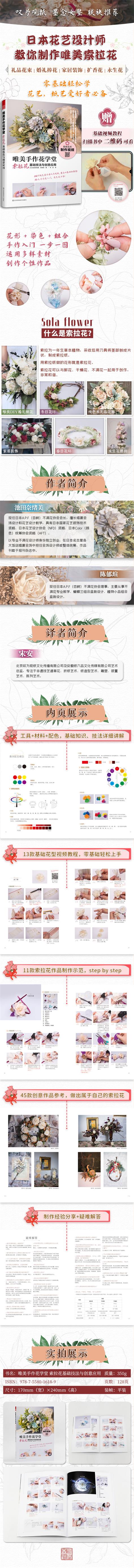 本書是由[日] 池田奈緒美和陳郁瑄老師傾力打造的一本融教學(xué)與玩趣為一體的索拉花花藝作品制作教程,不僅可以作為索拉花婚禮花藝、室內(nèi)裝飾花藝制作的啟蒙圖書,也適合花藝制作者和愛好者作為素材集來閱讀。